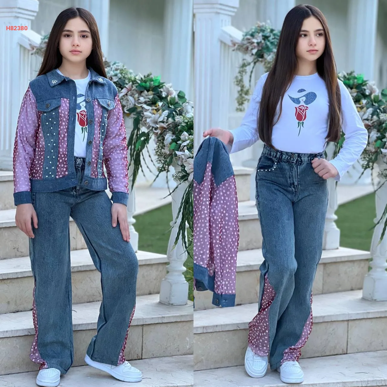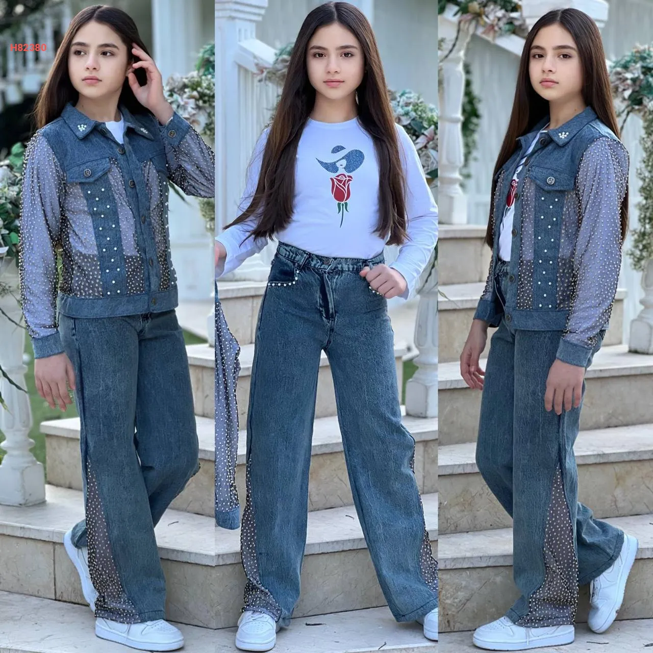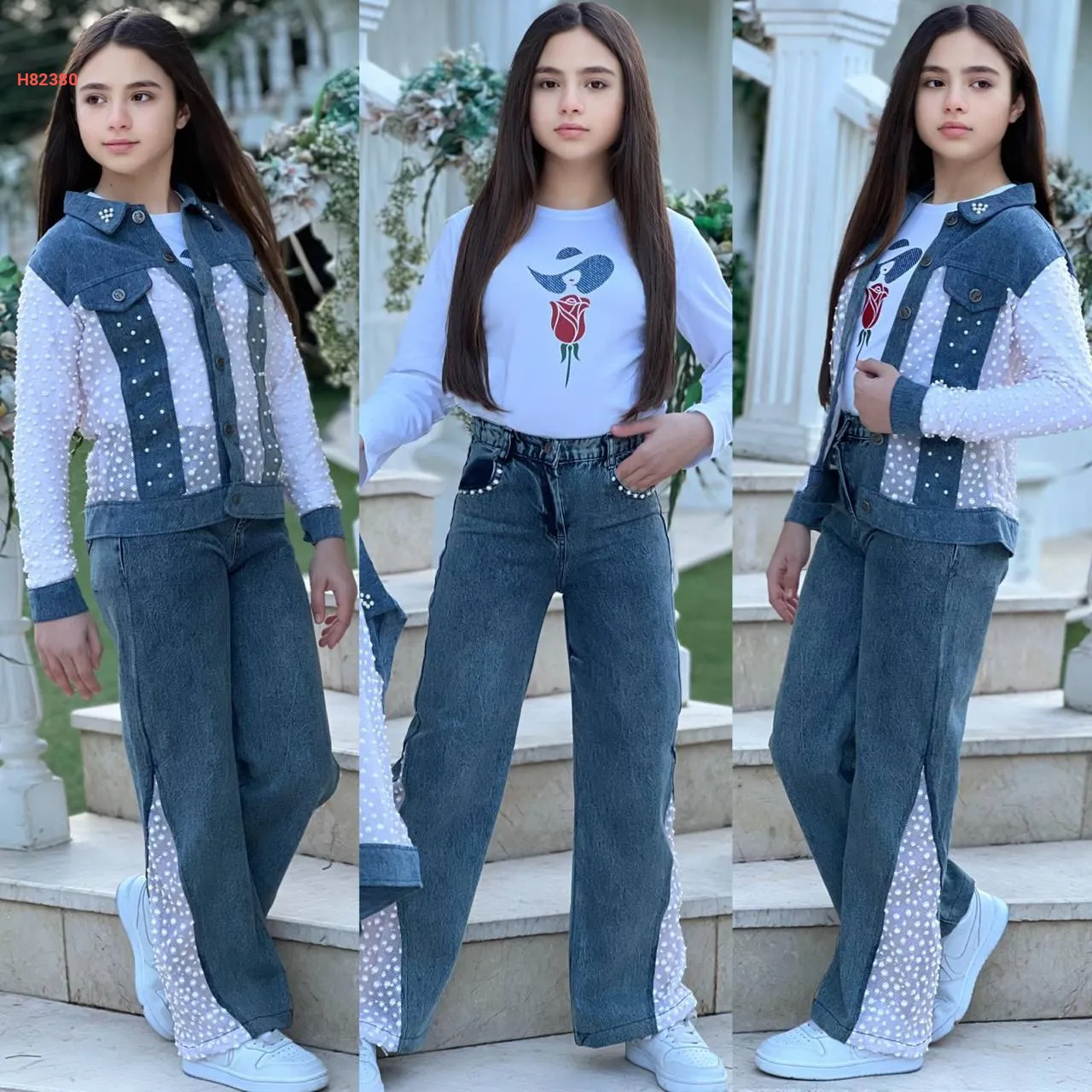 طقم جينز بناتي 3 قطع
