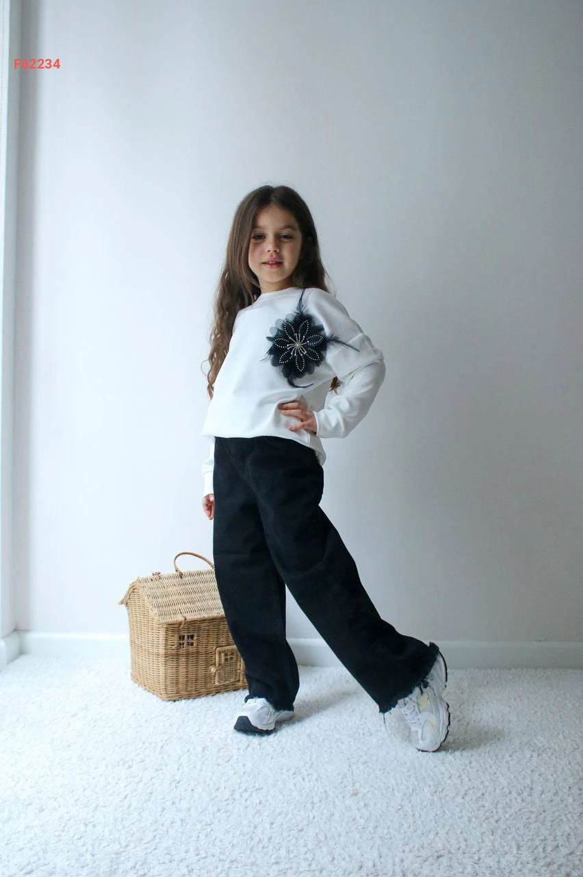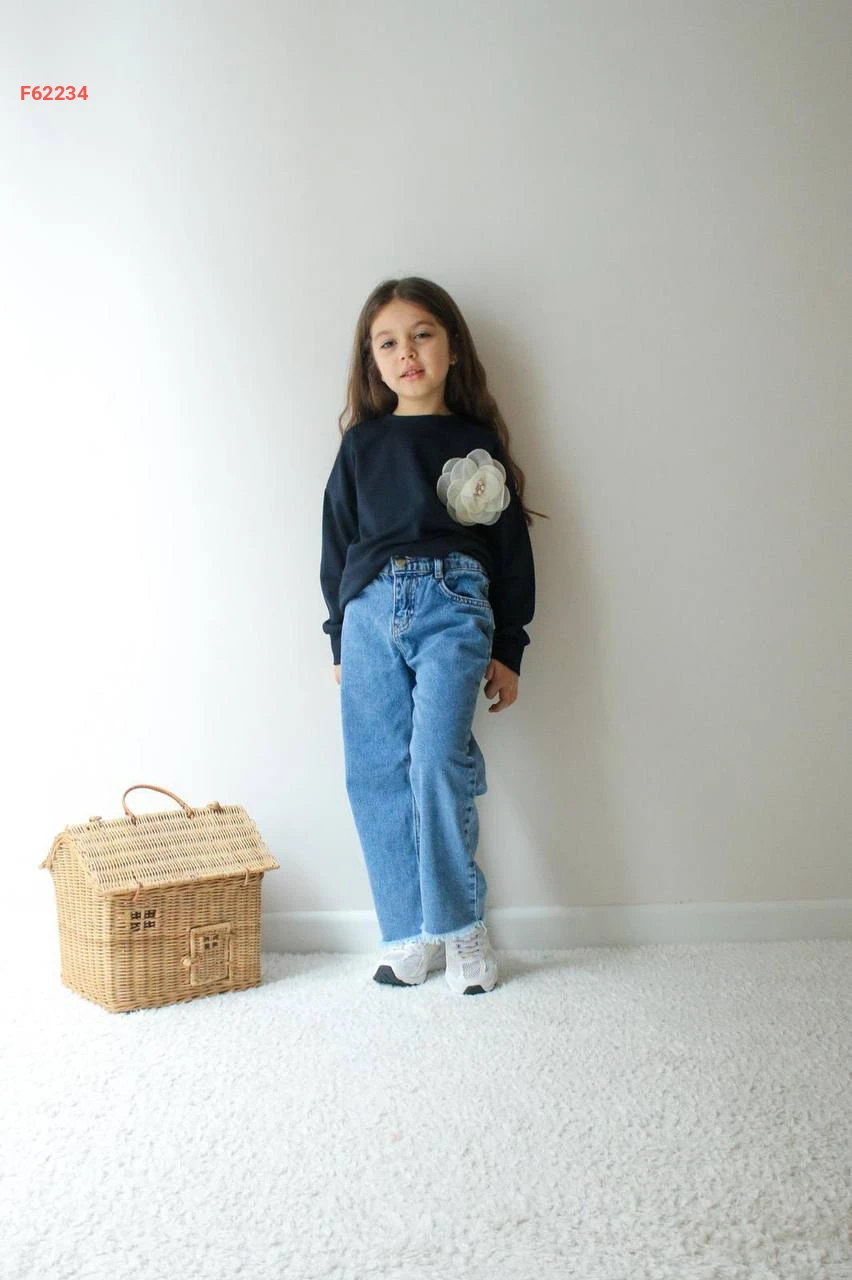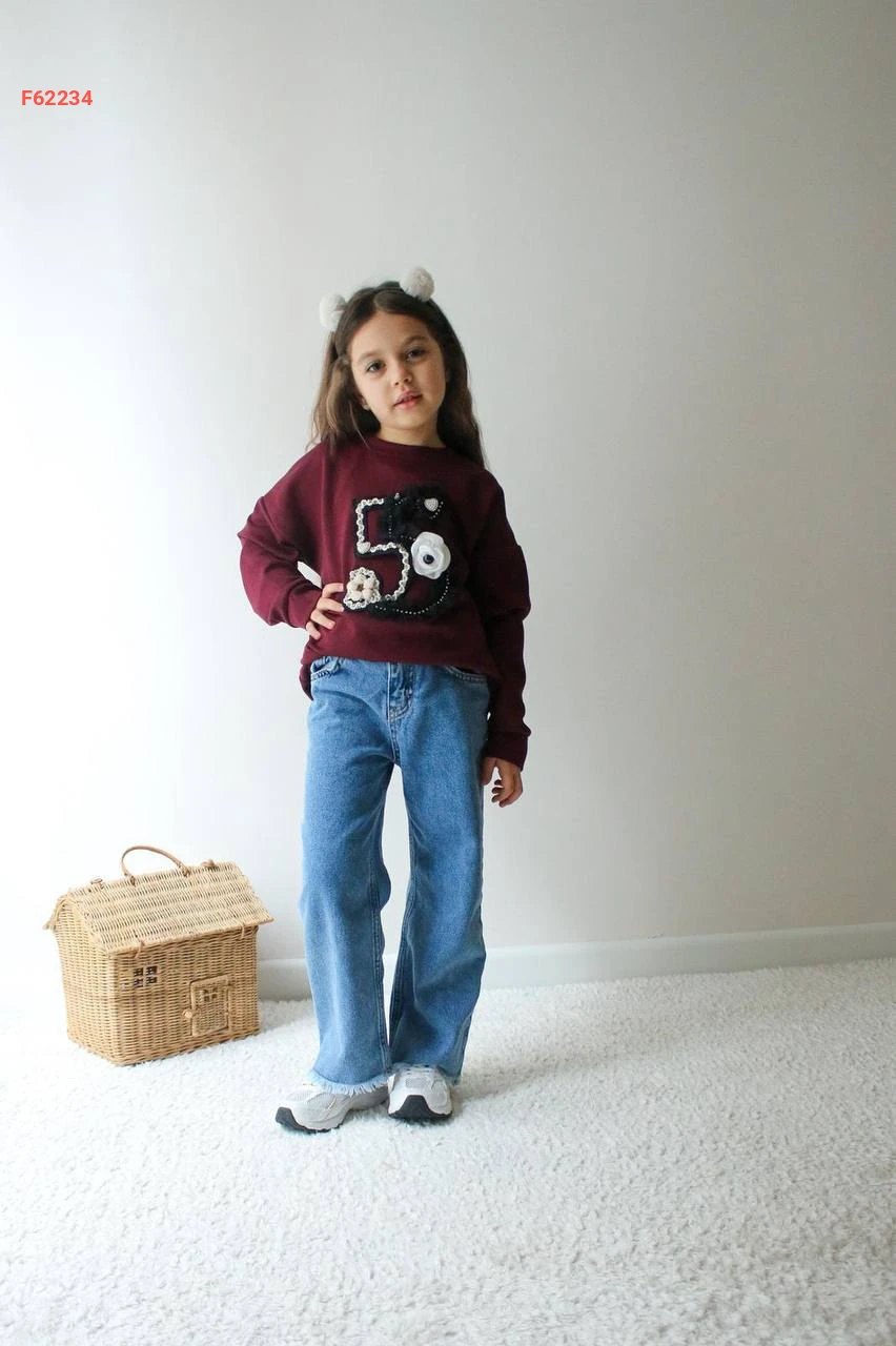 طقم بنطال جينز بناتي وكنزة اويشو كم