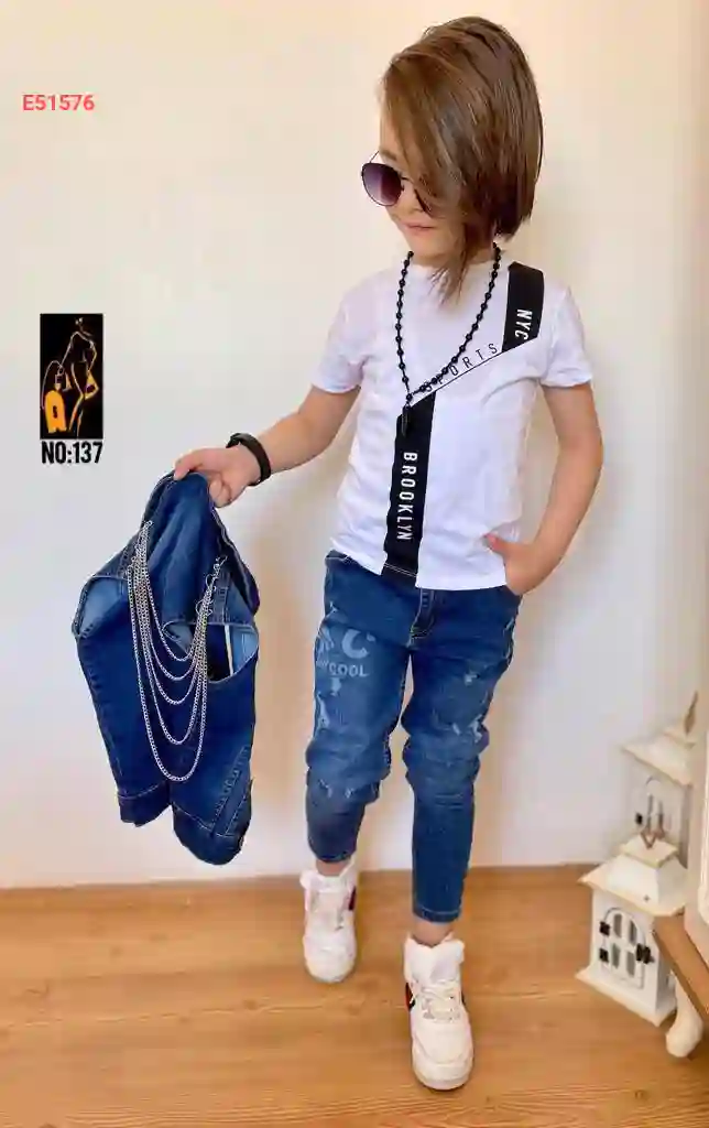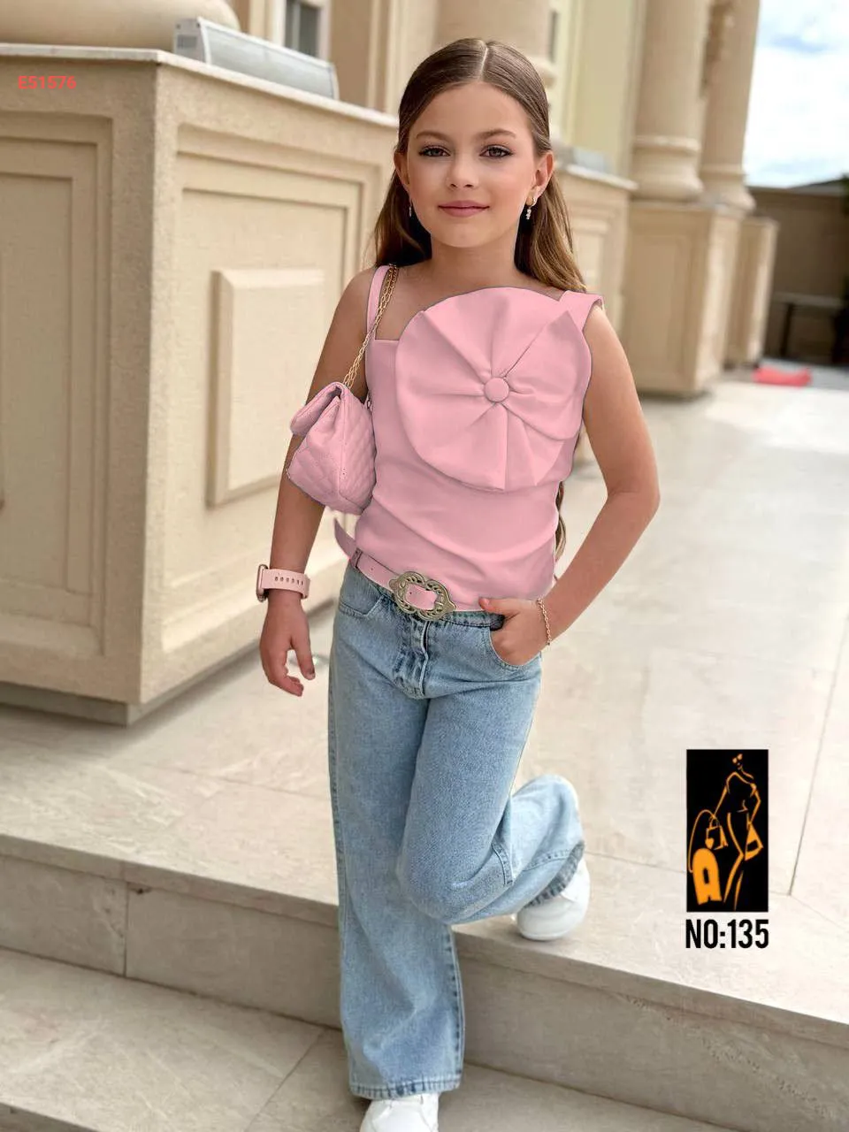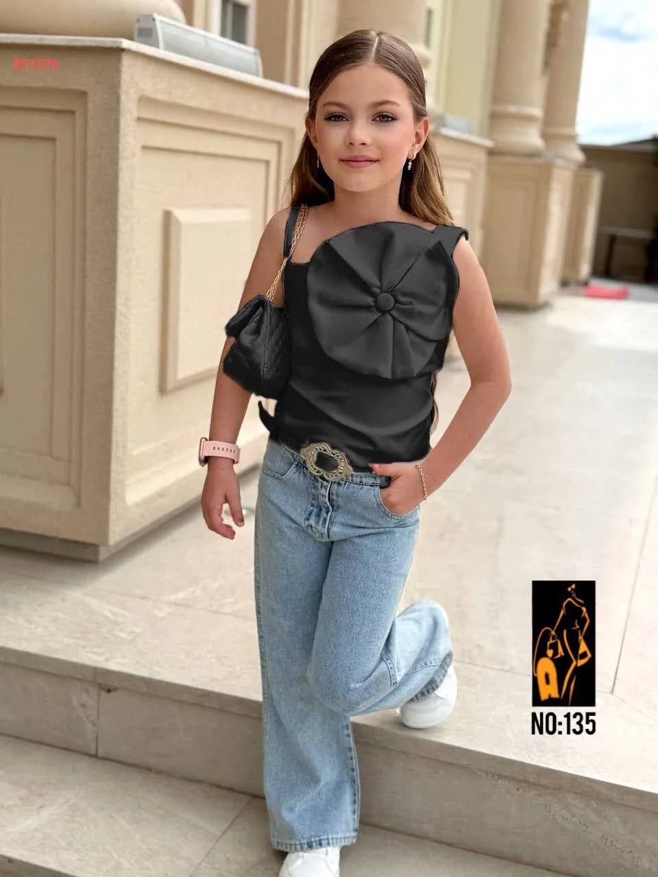 Yeni Model 😍 4,pieces 4li,takim Pantolon + Tişört + Çanta + Kemer Yaş:/7/8/9/10/11/12/13/14 * *🔥🇹🇷🔥 C