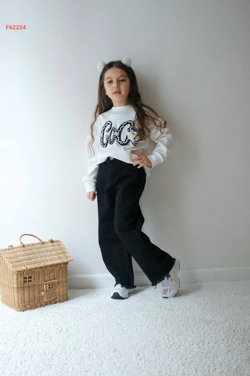 طقم بنطال جينز بناتي وكنزة اويشو كم