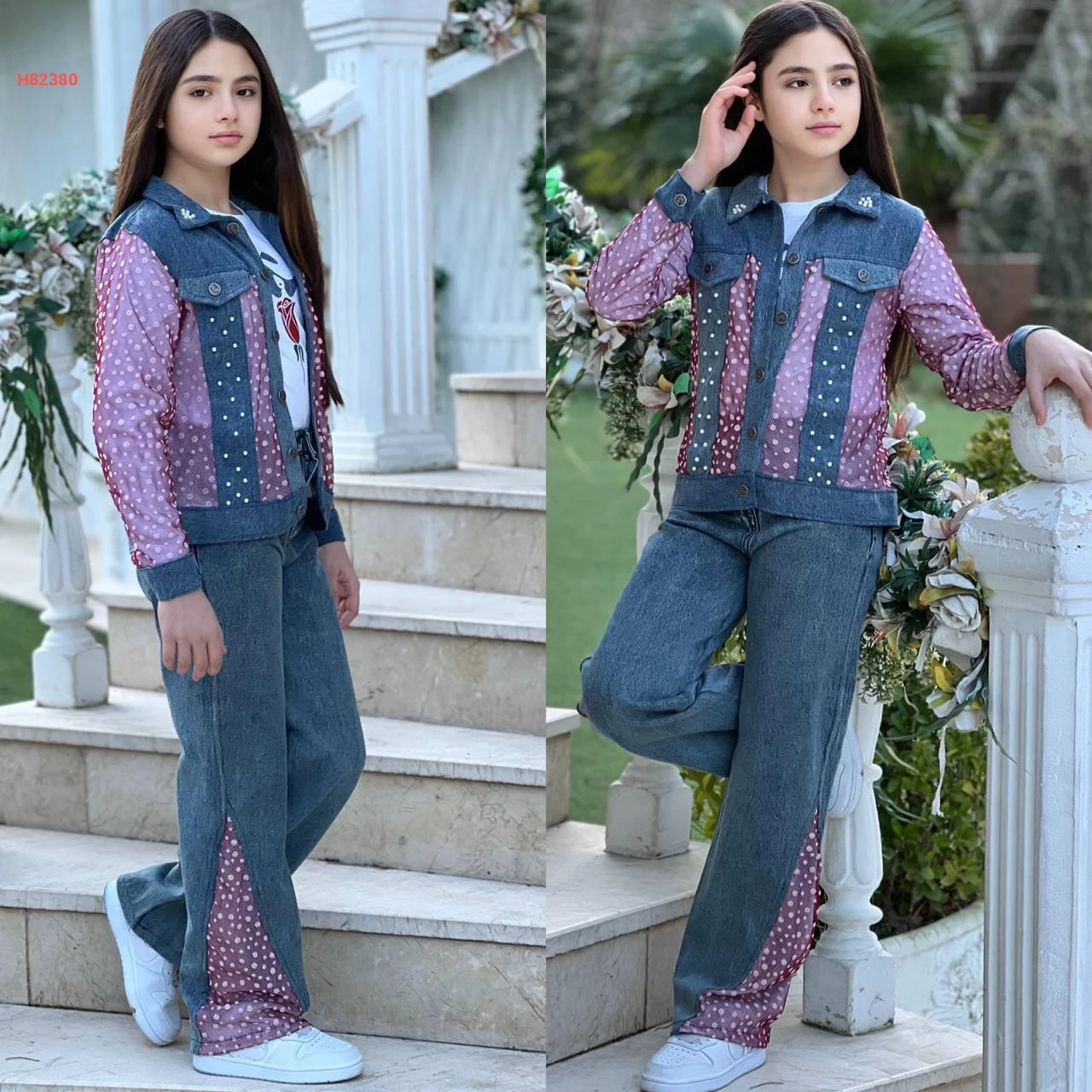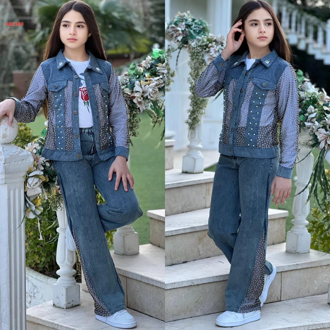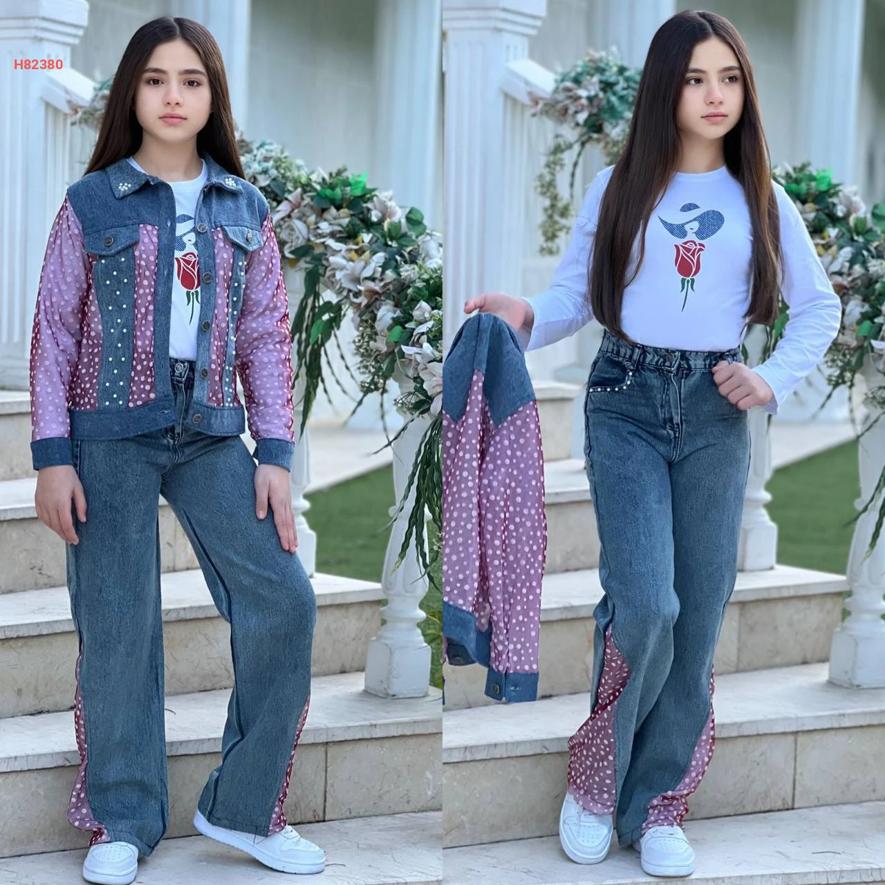 طقم جينز بناتي مع جاكيت تول