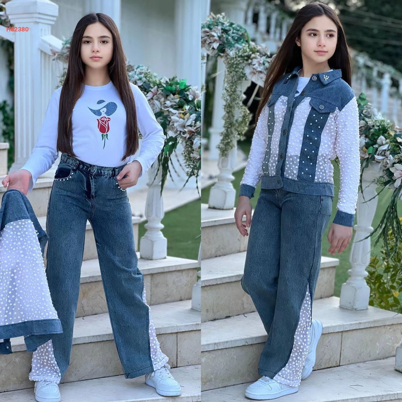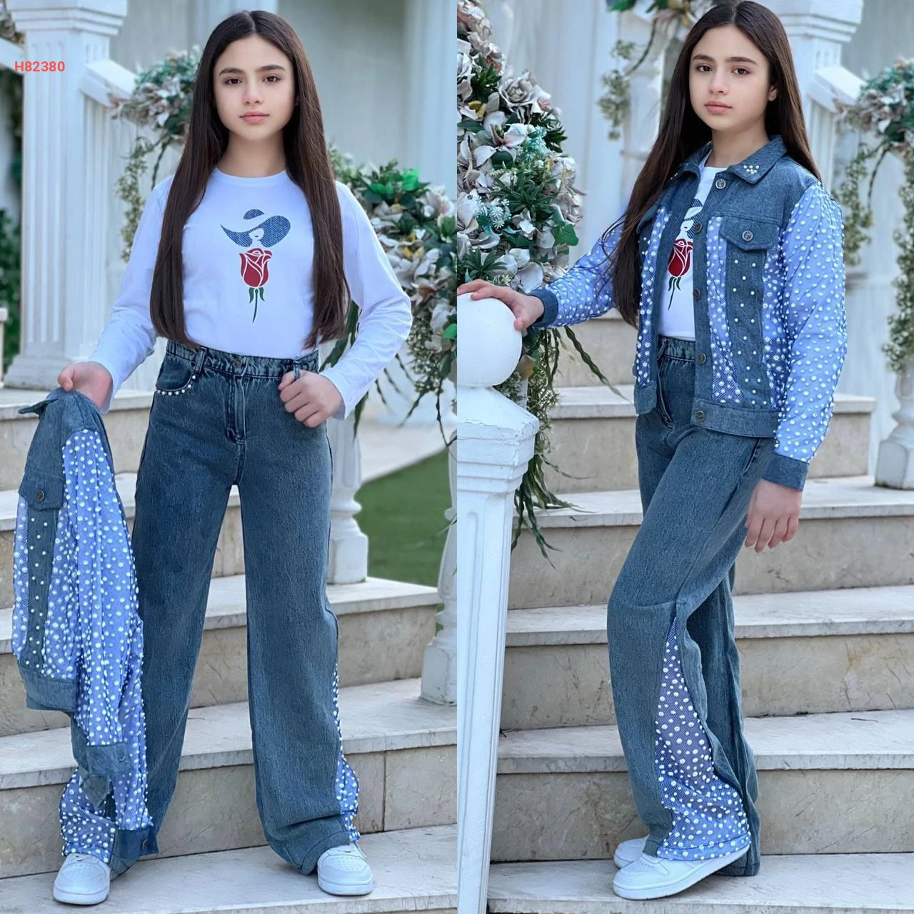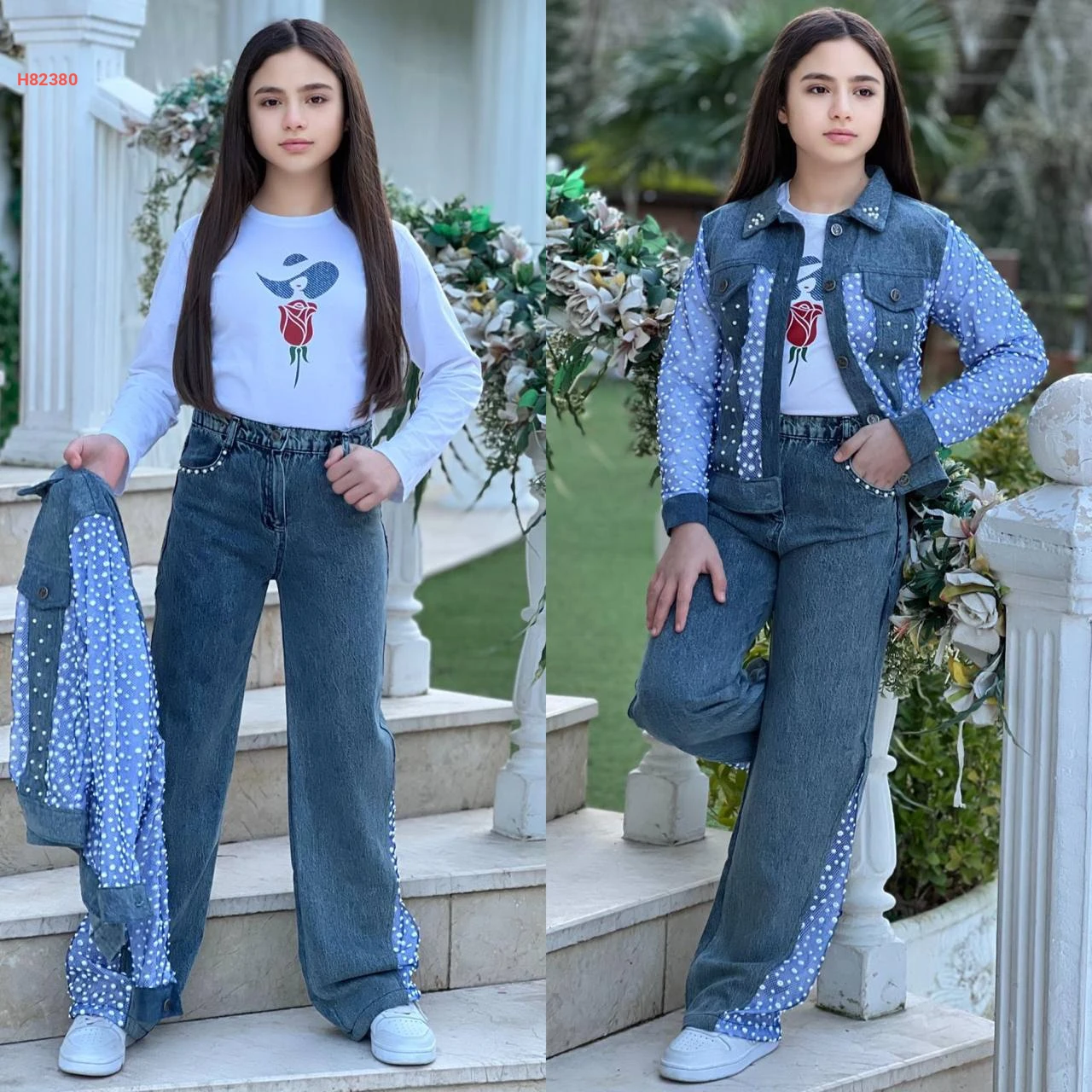 طقم جينز بناتي مع جاكيت تول