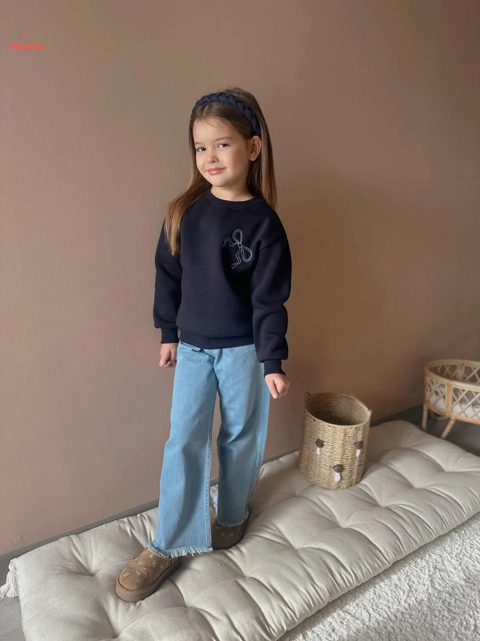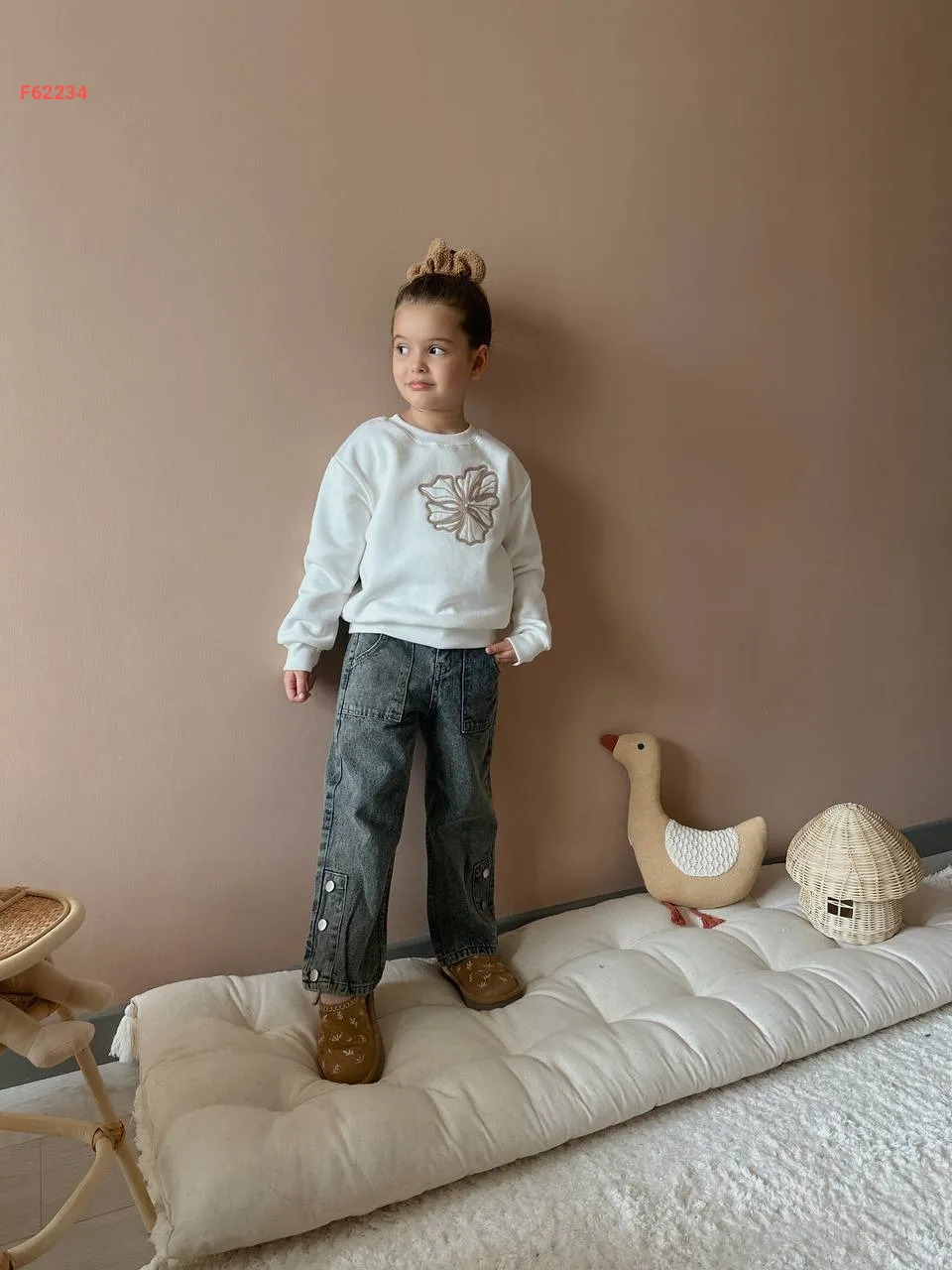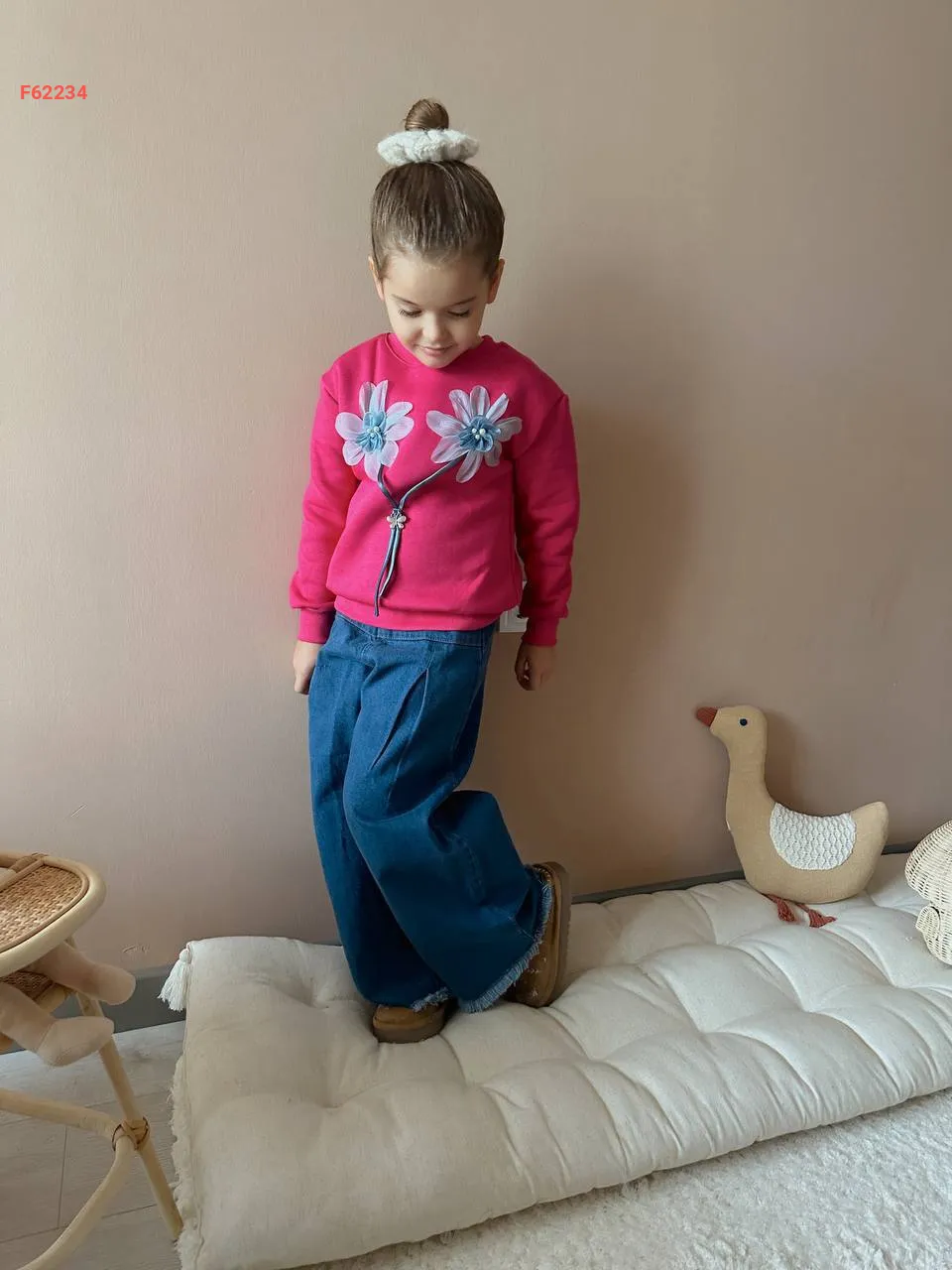 طقم بنطال جينز بناتي وكنزة كم