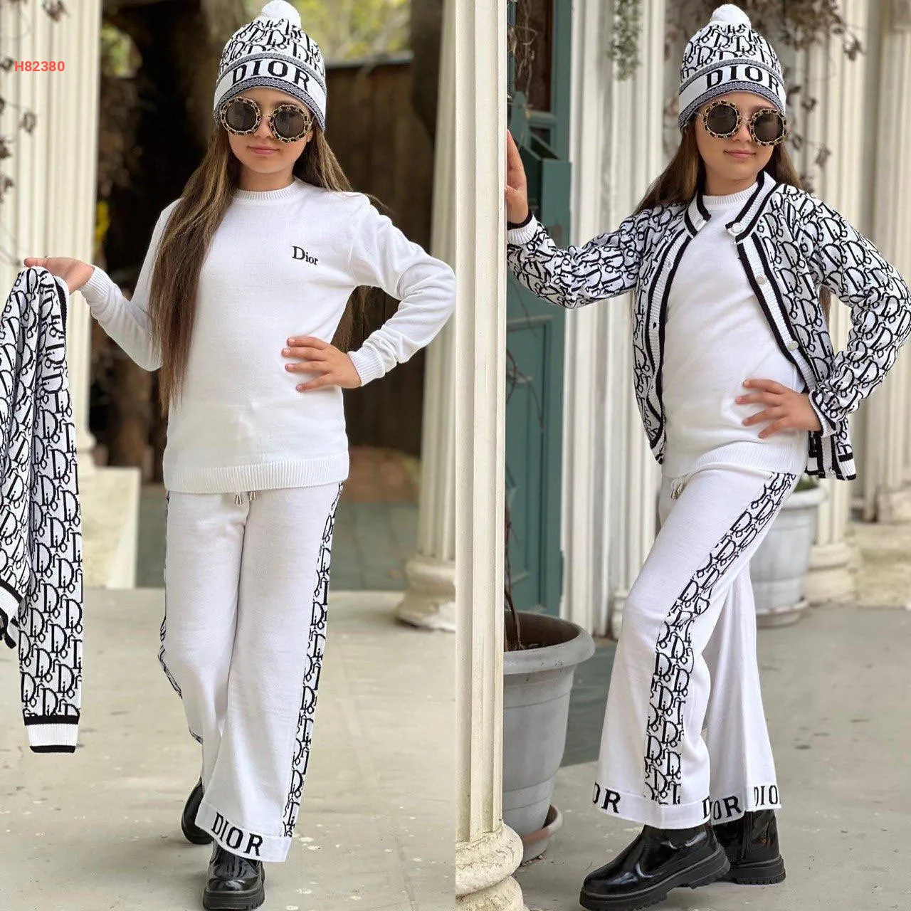 طقم بنطال بناتي تريكو 4 قطع ماركة