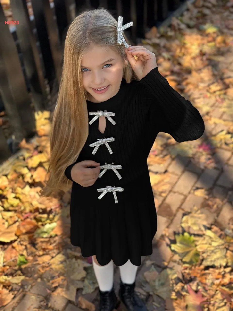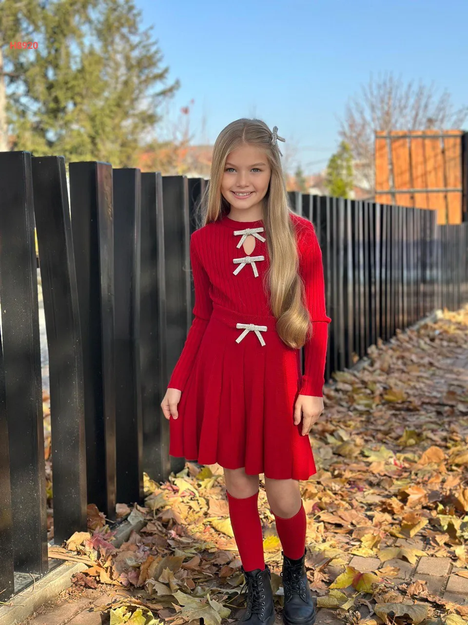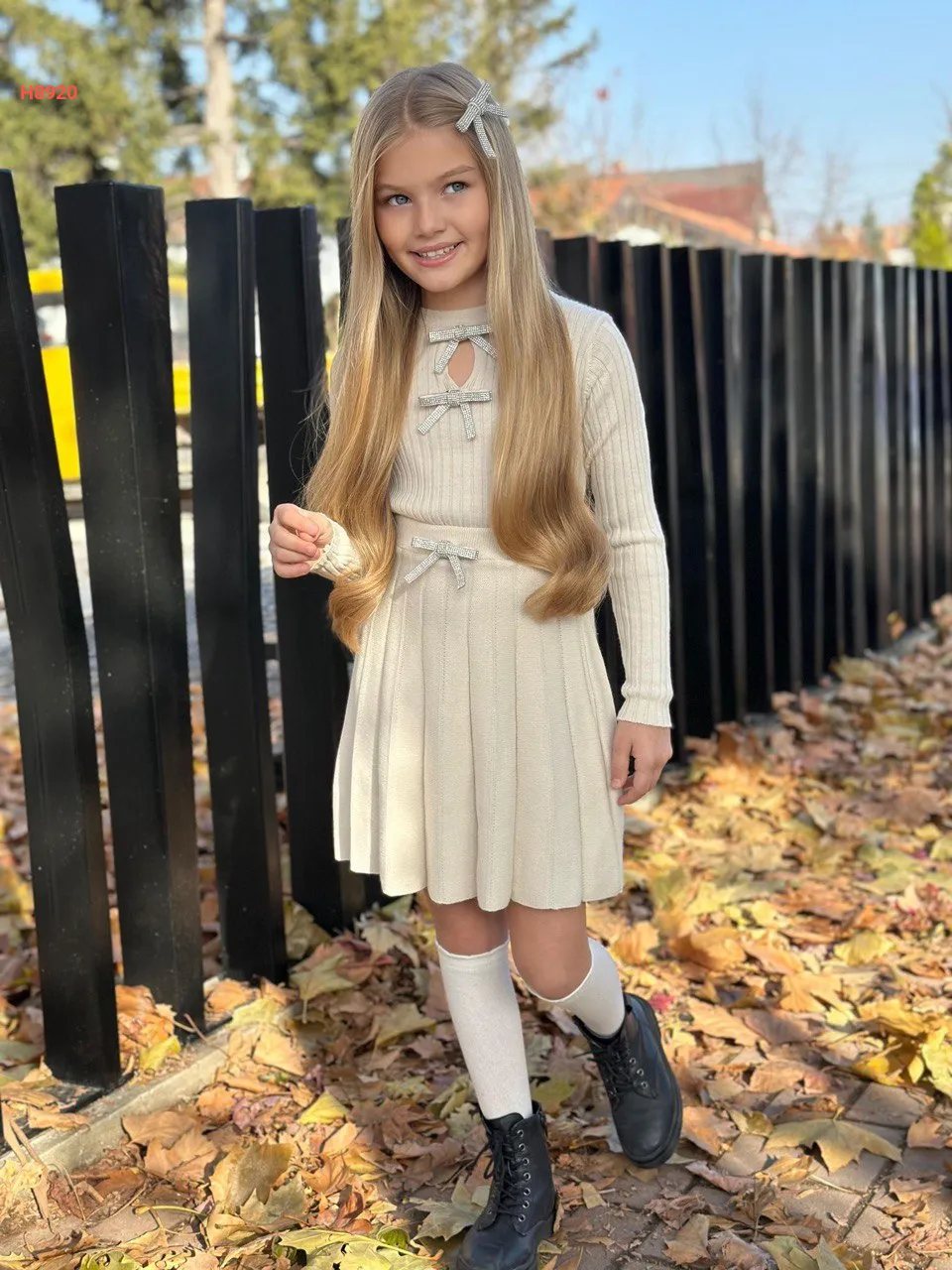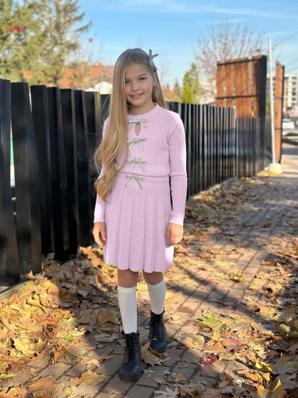 طقم تنورة بناتي تريكو مزين فيونكات