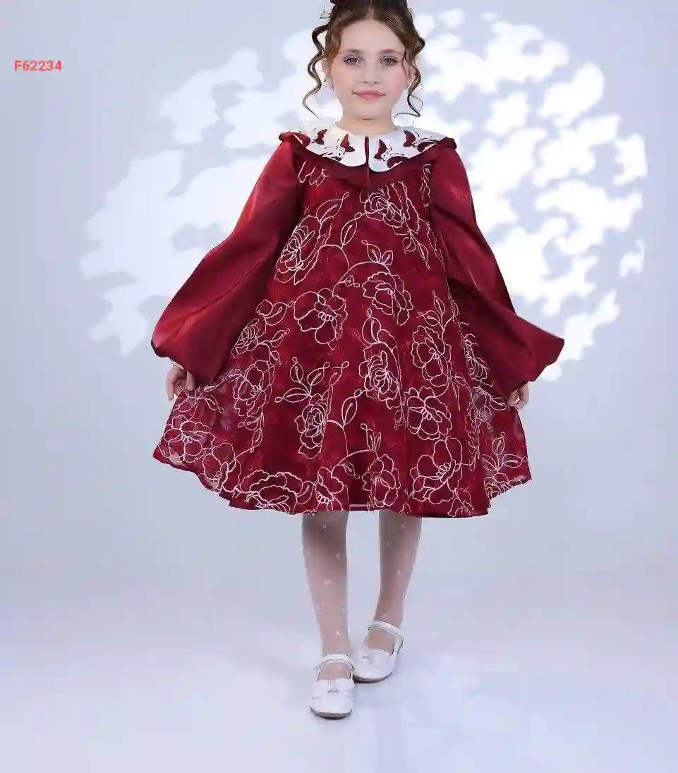 فستان بناتي كم طويل مطرز