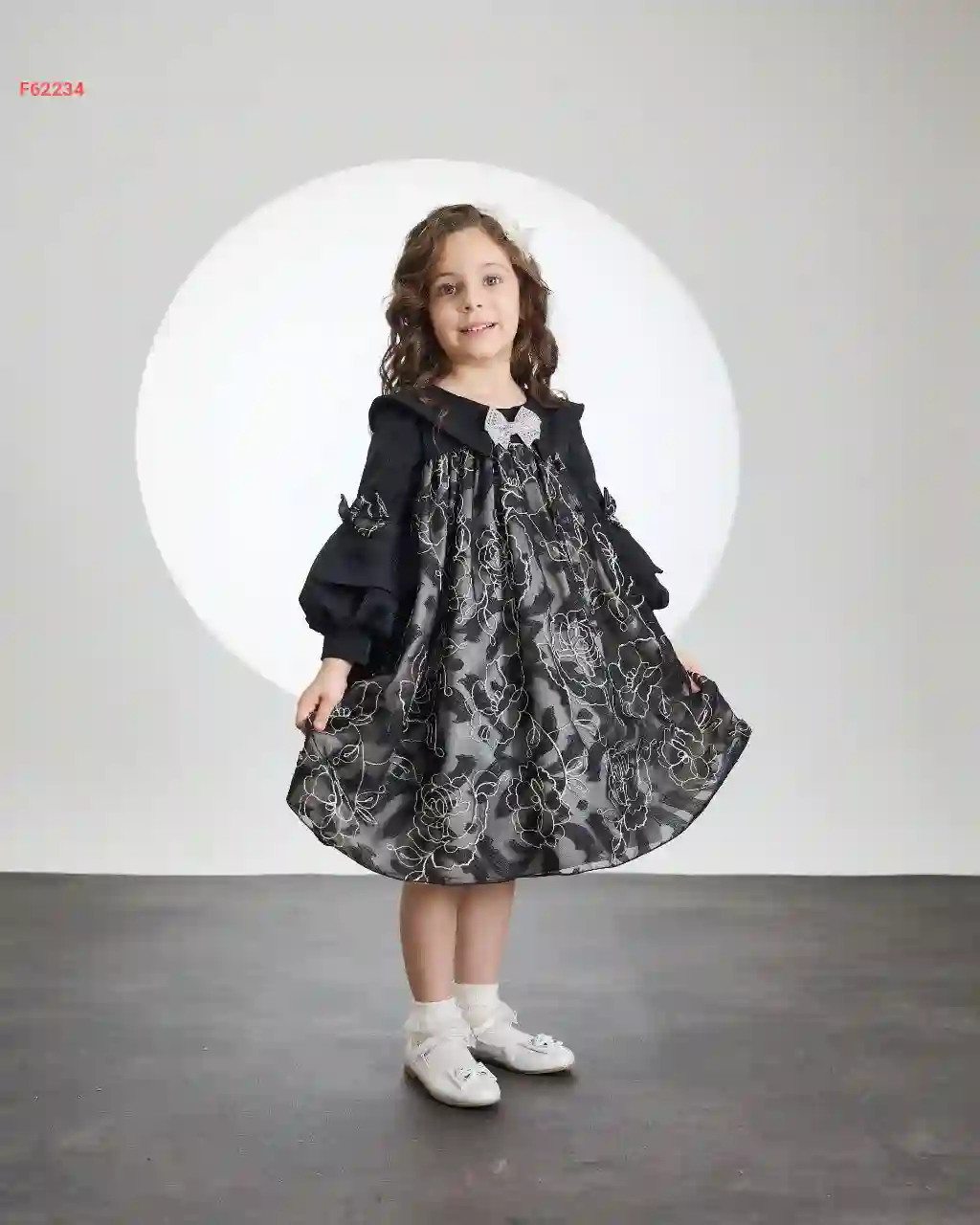 فستان بناتي مطرز مع فيونكات