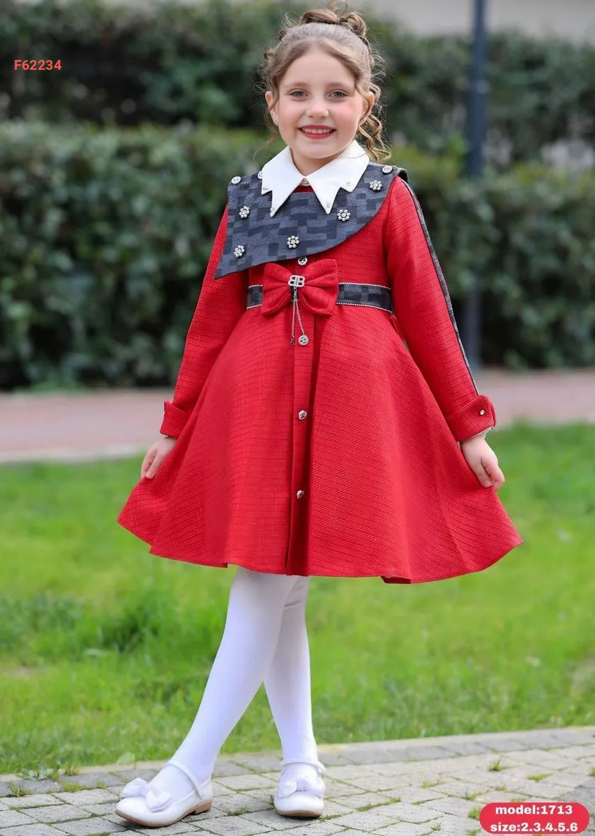 فستان بناتي كم طويل مزين لولو