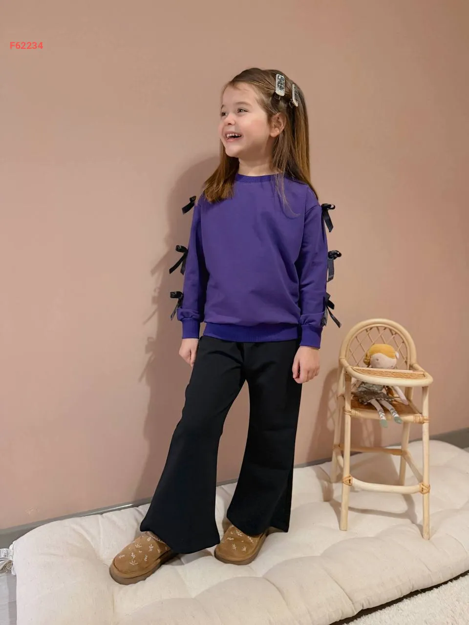 بيجامة بناتي كم طويل بفيونك عالأكمام