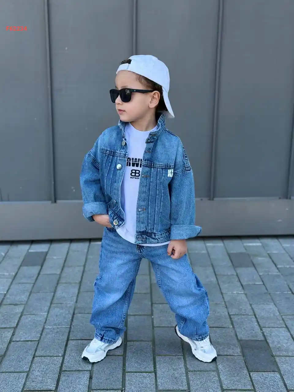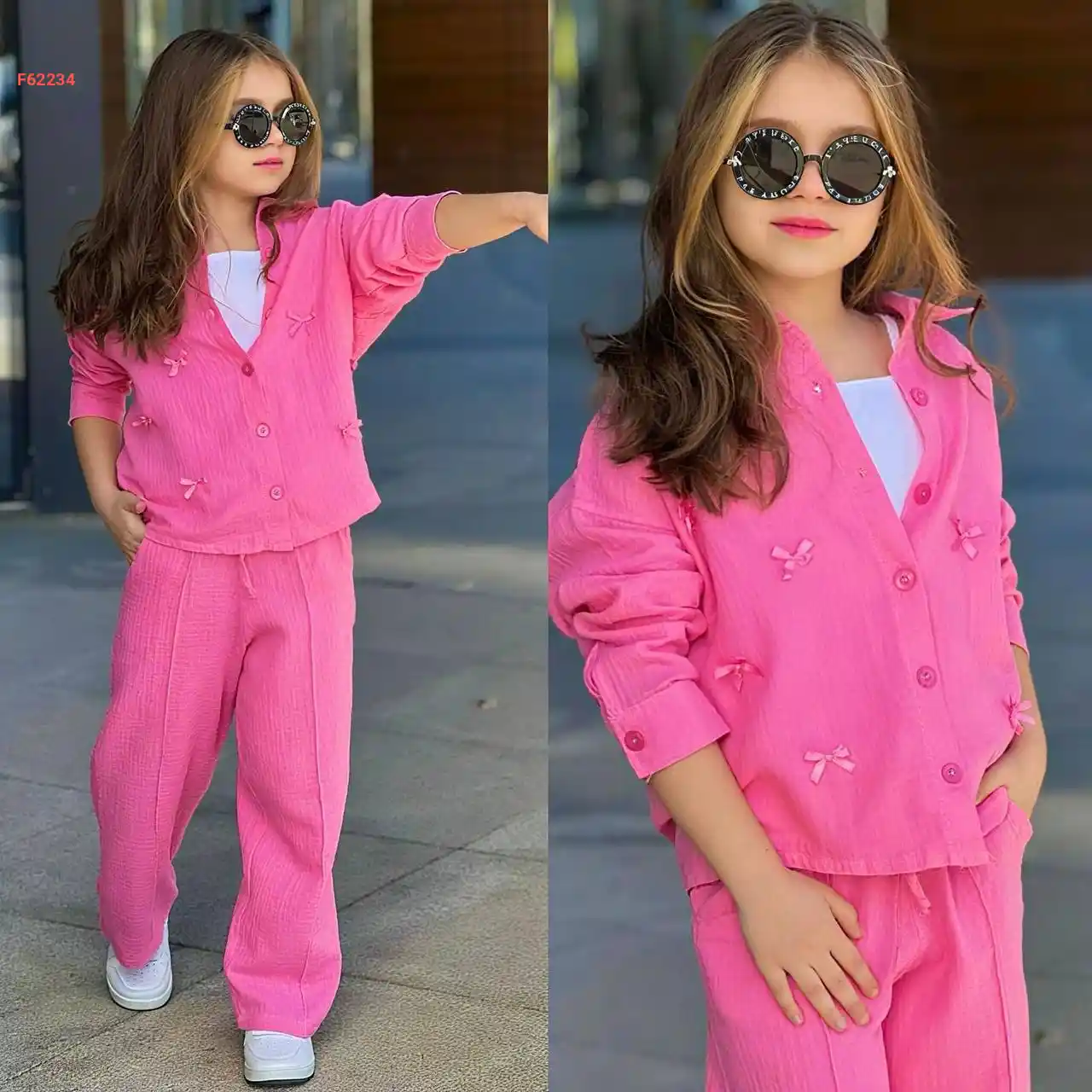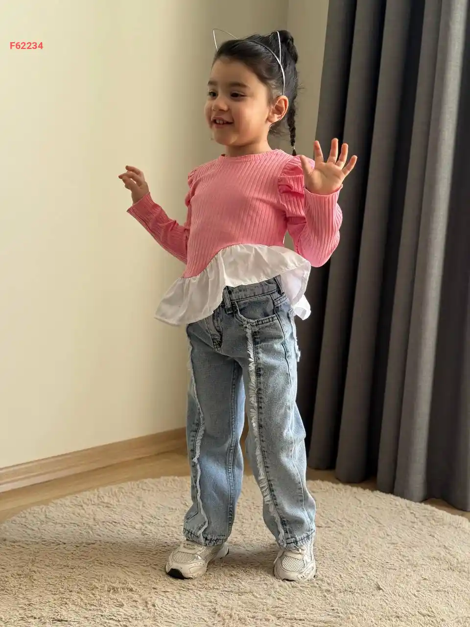 طقم بناتي بنطال جينز وكنزة بفيونكات