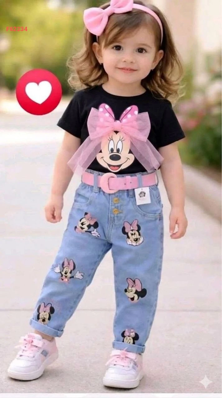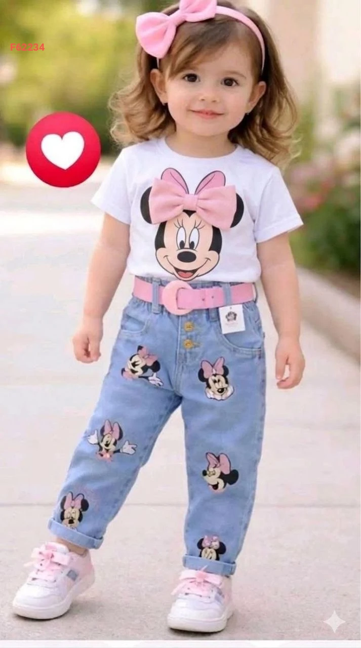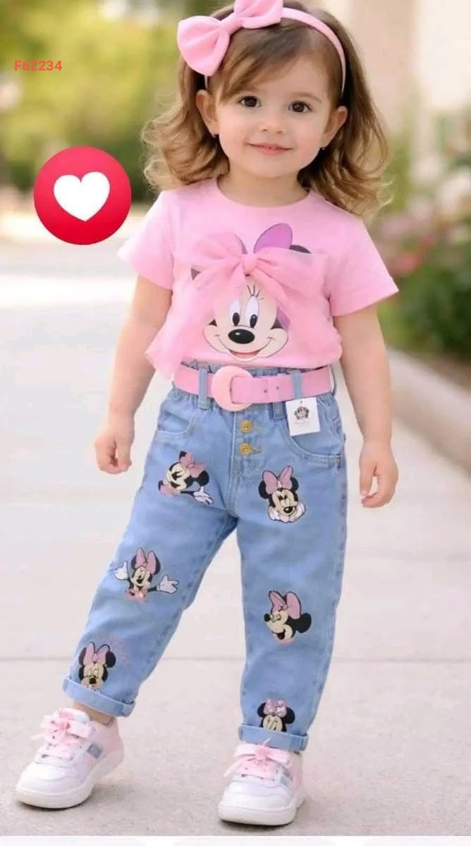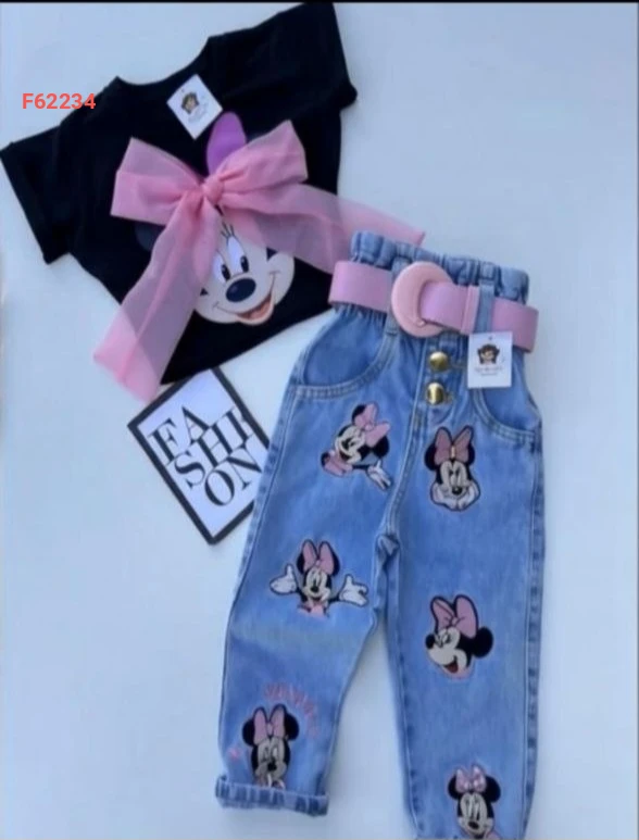 طقم بناتي ميني ماوس بنطال جينز وتيشرت