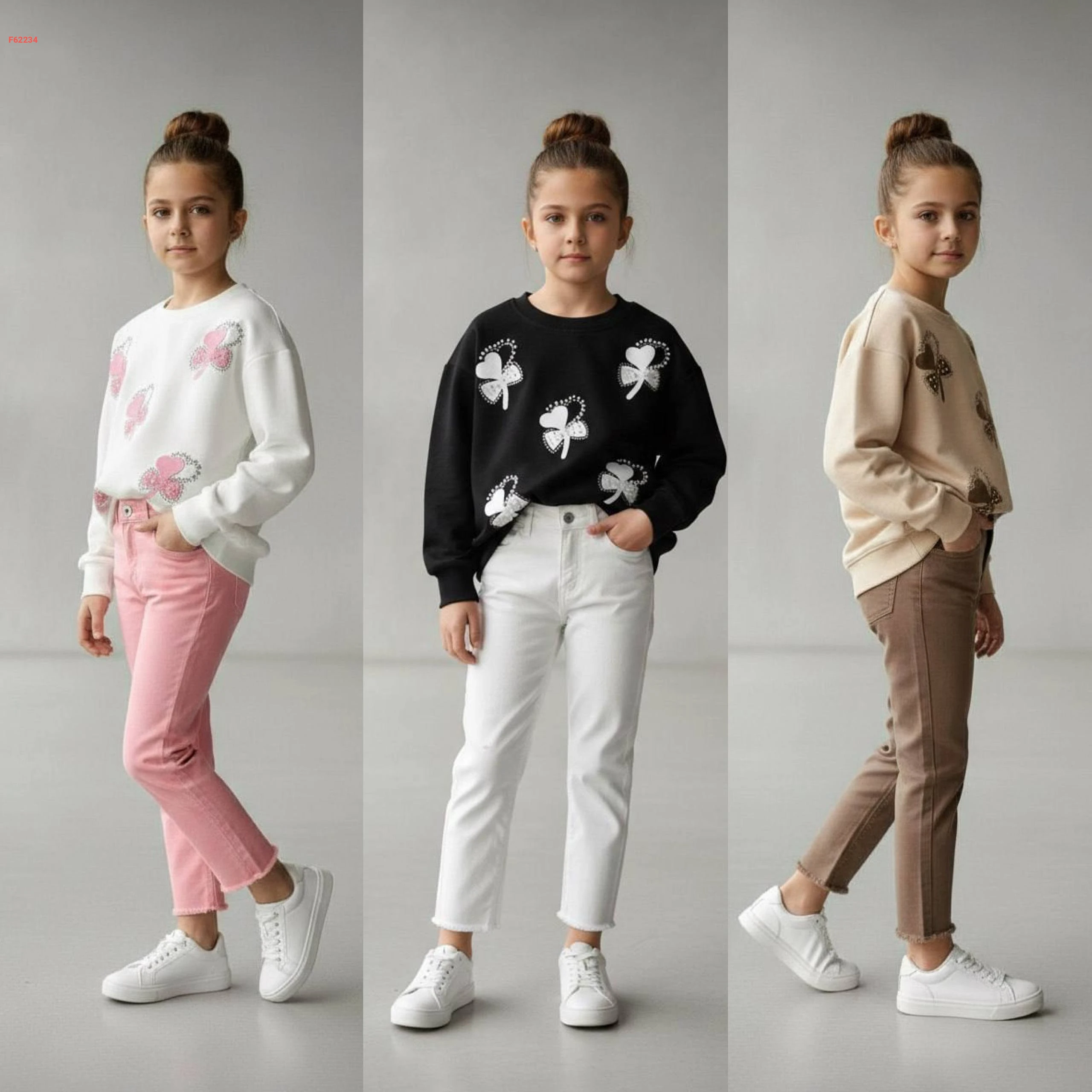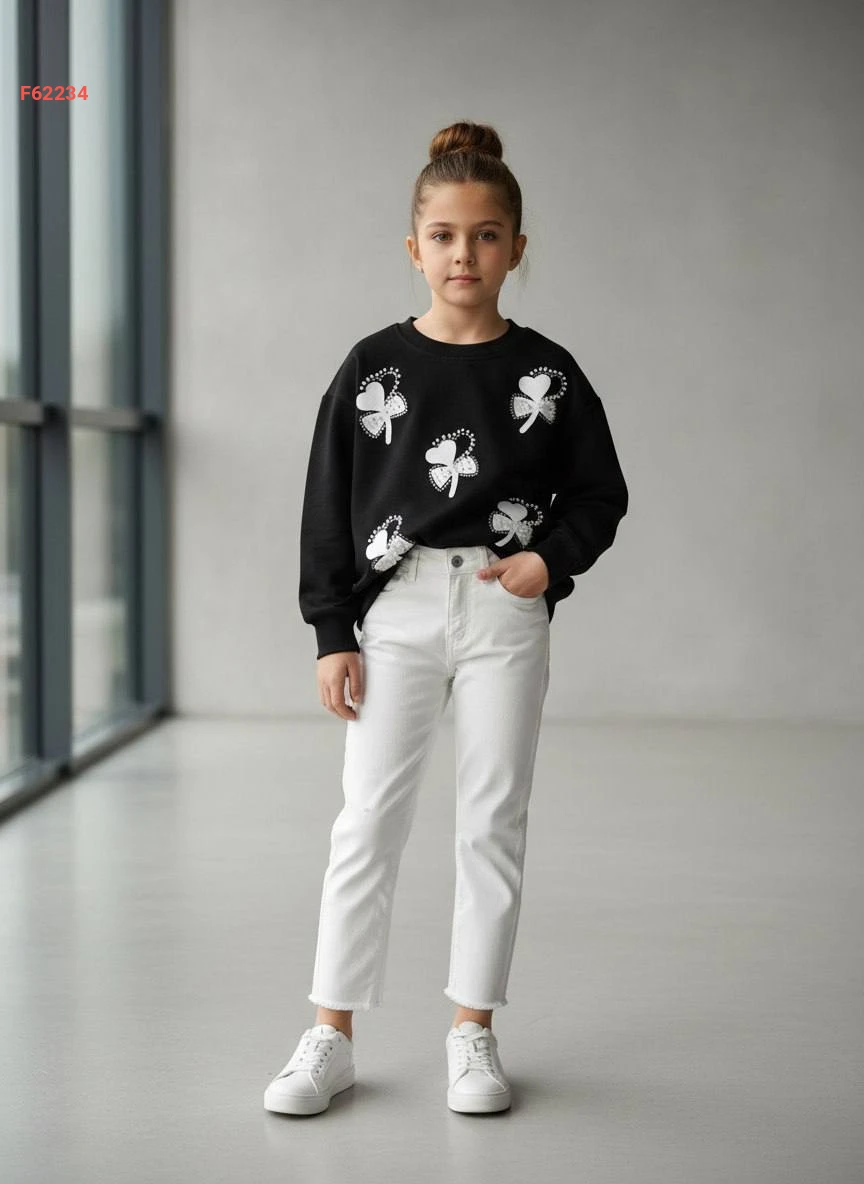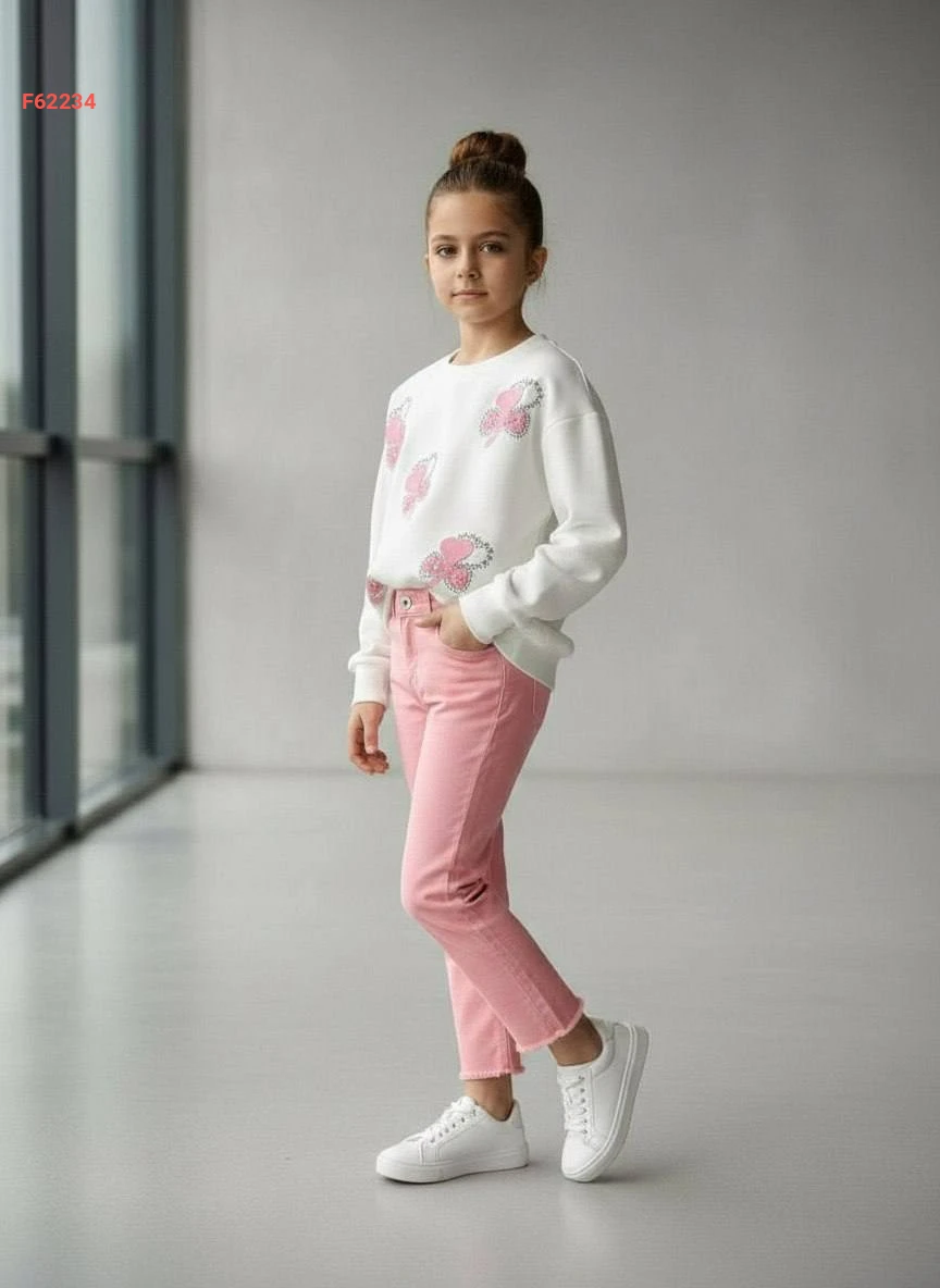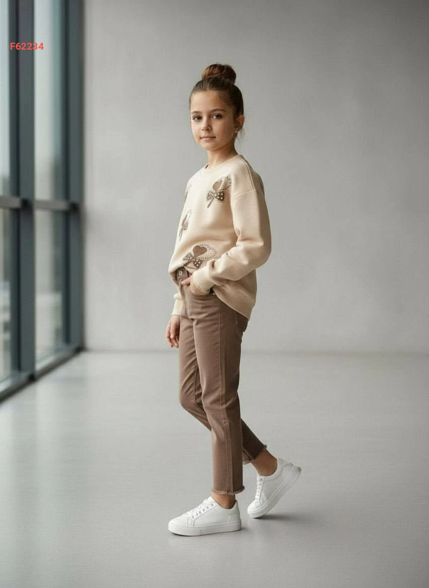 طقم بنطال بناتي وكنزة كم