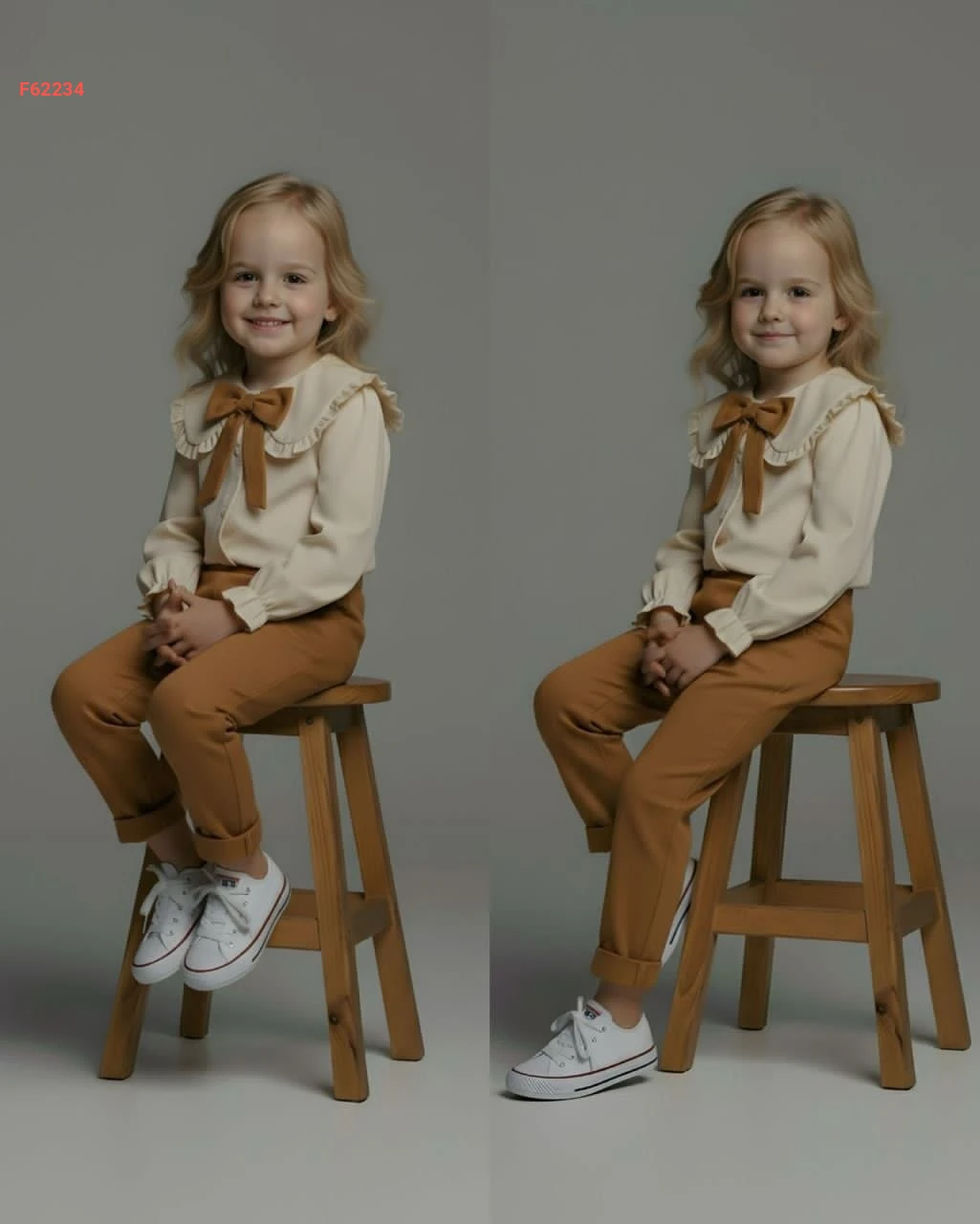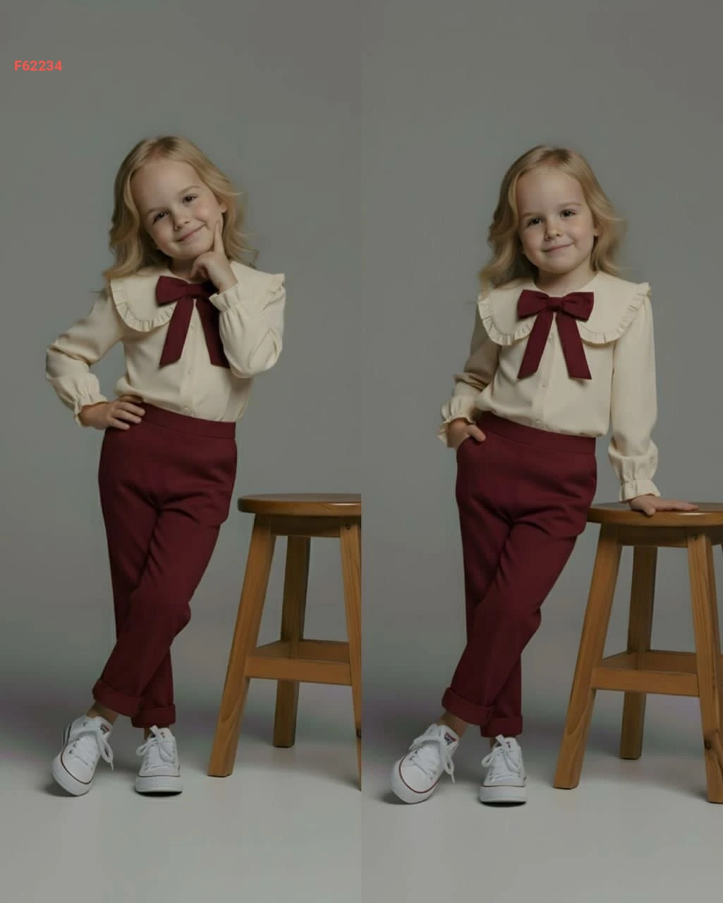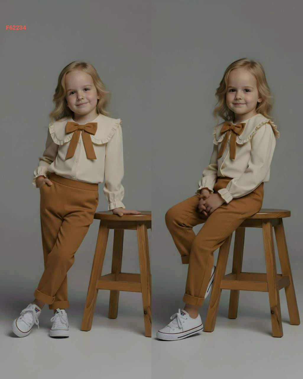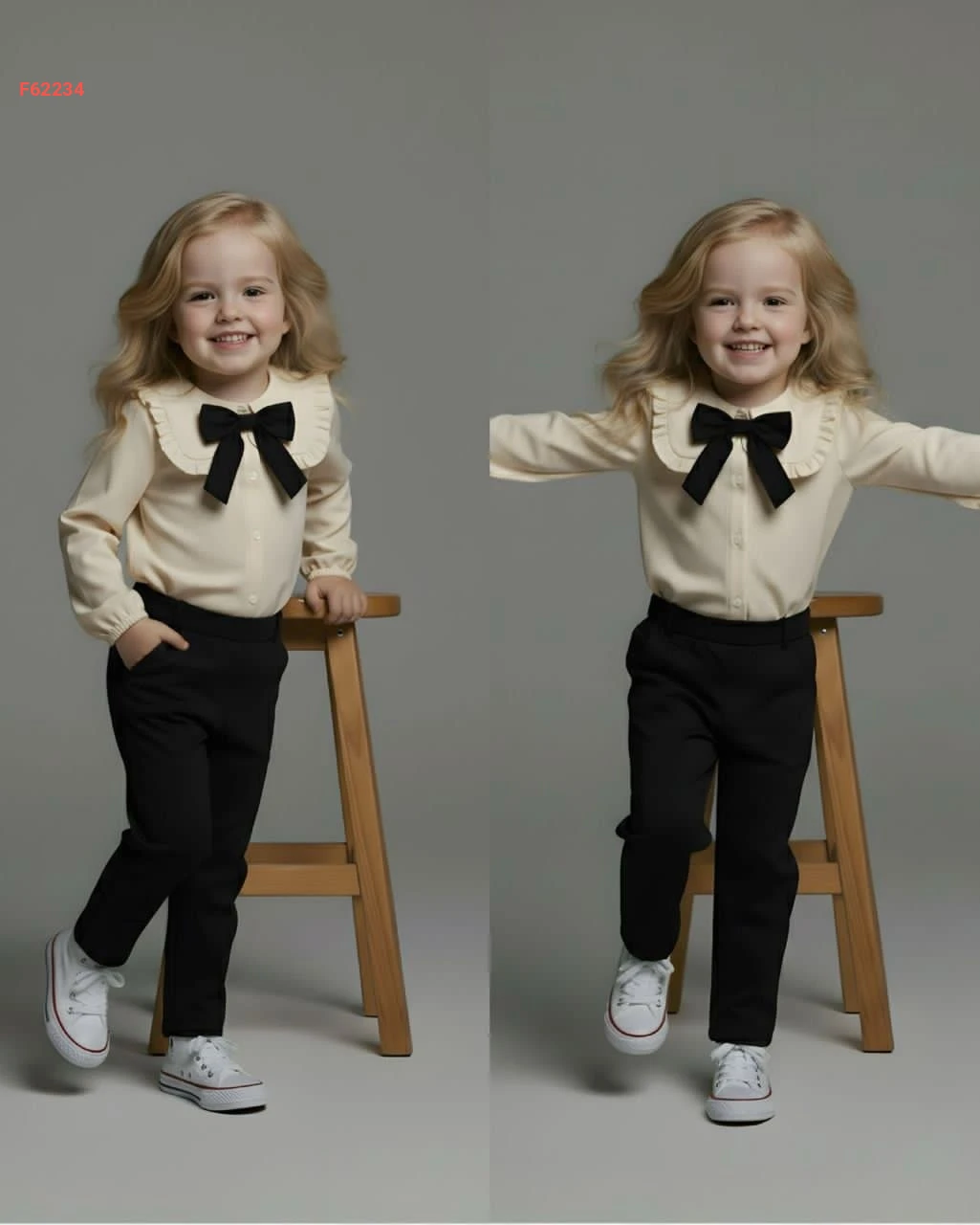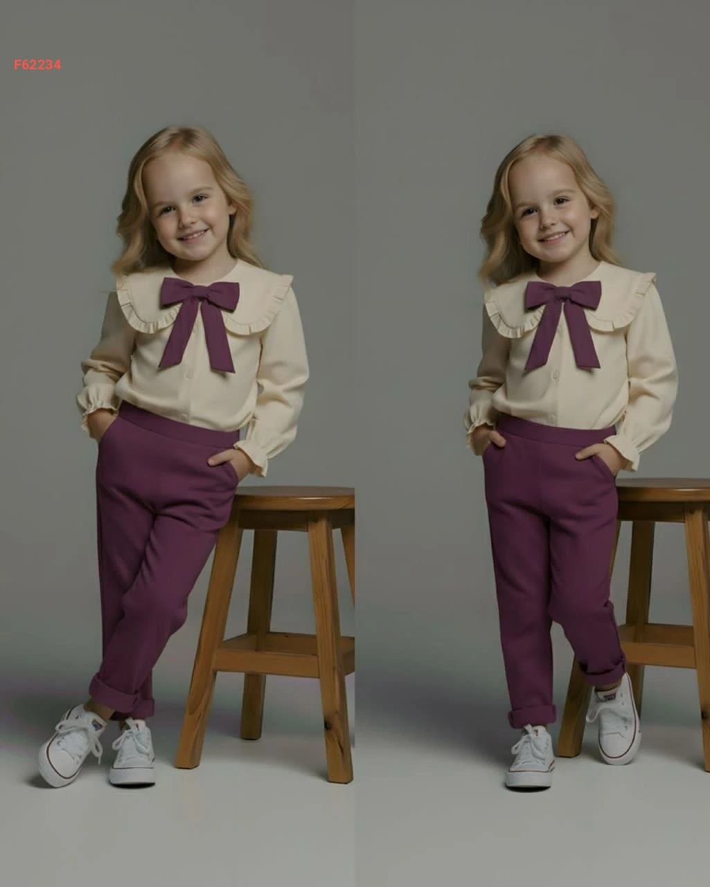 طقم بنطال بناتي وقميص بفيونكة