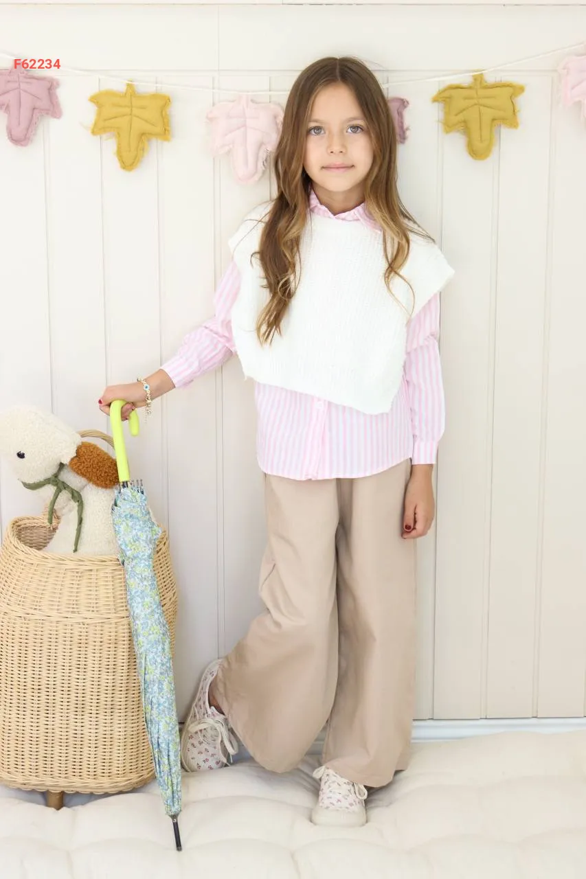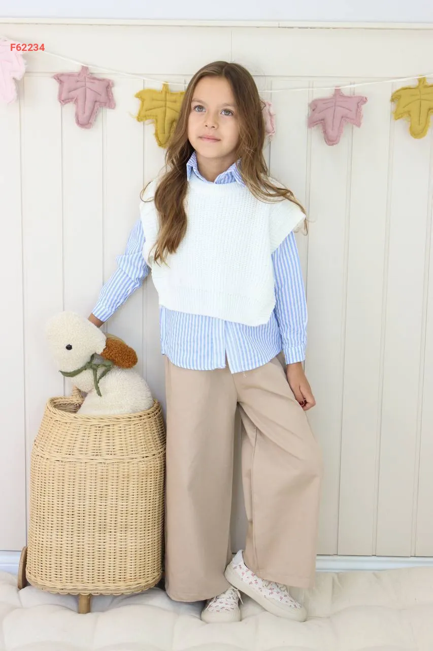طقم بنطال بناتي وقميص مع كنزة تريكو
