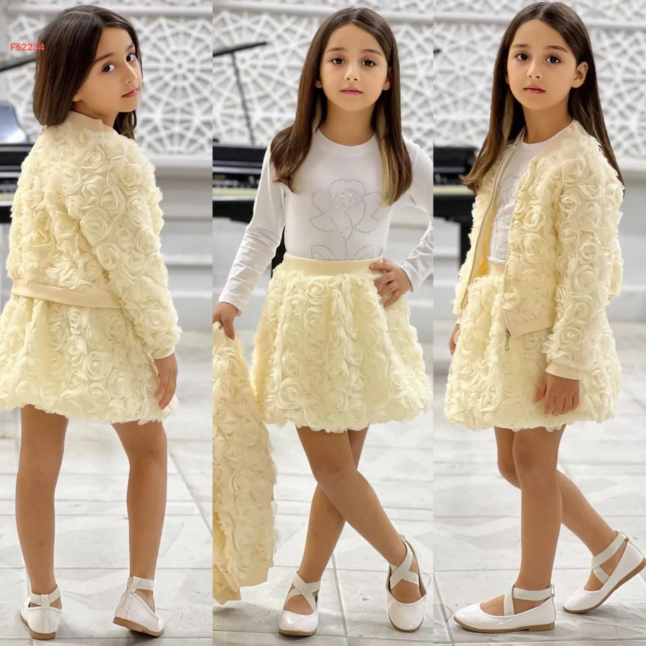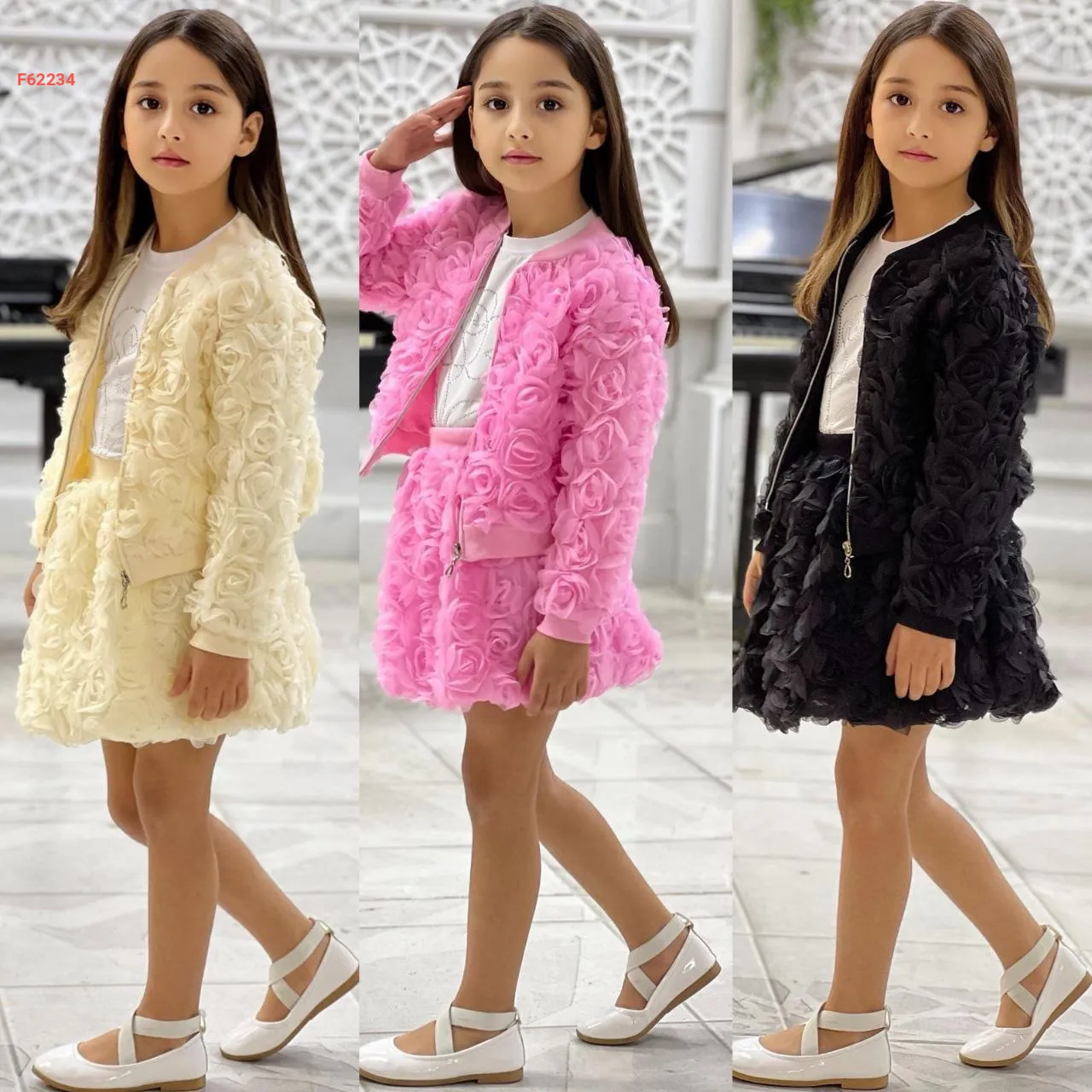طقم تنورة بناتي ورد