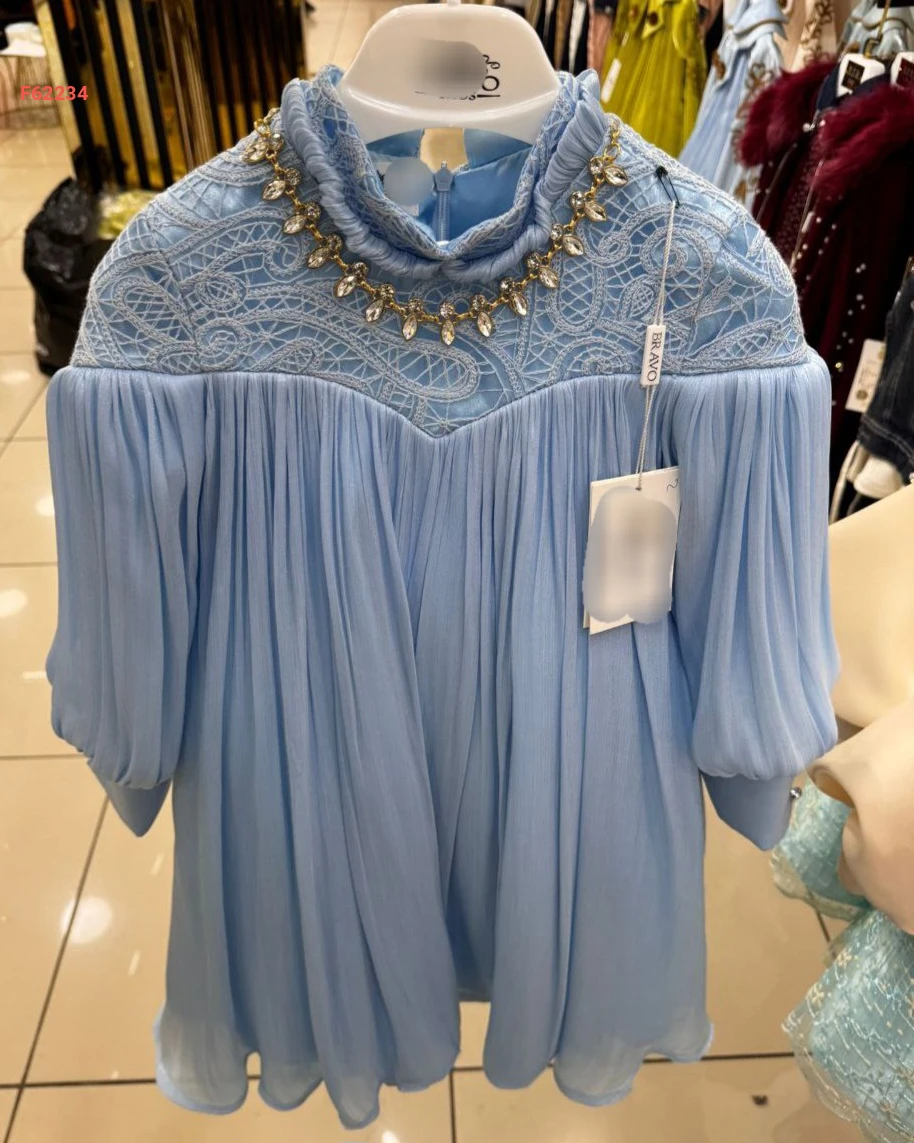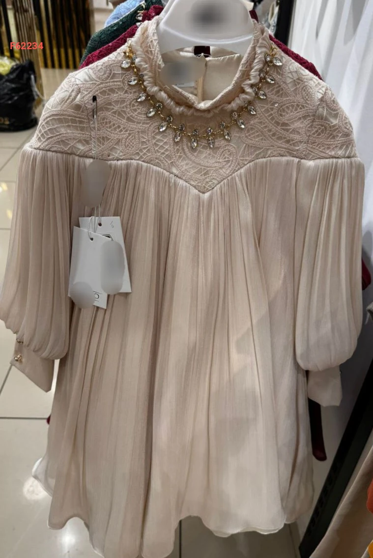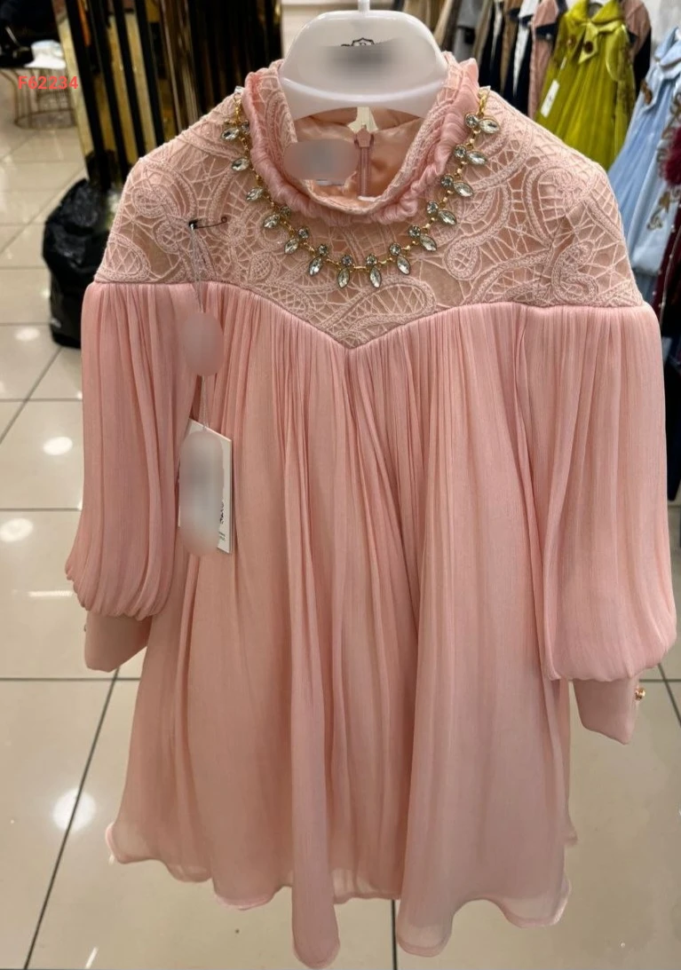 فستان بناتي بليسيه مطرز أحجار