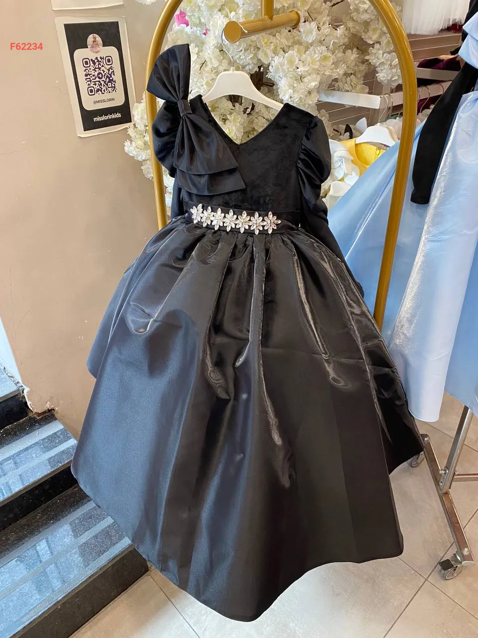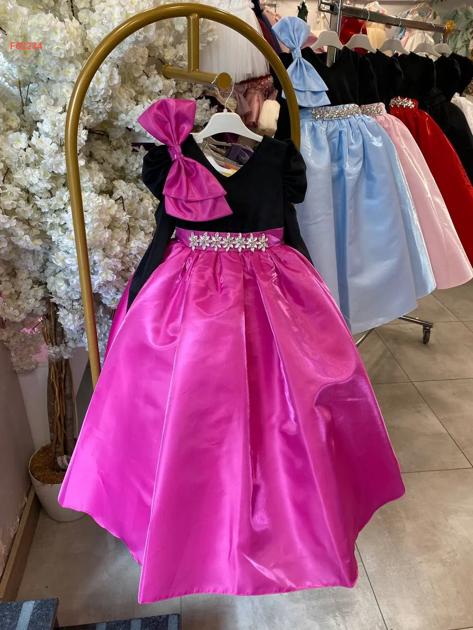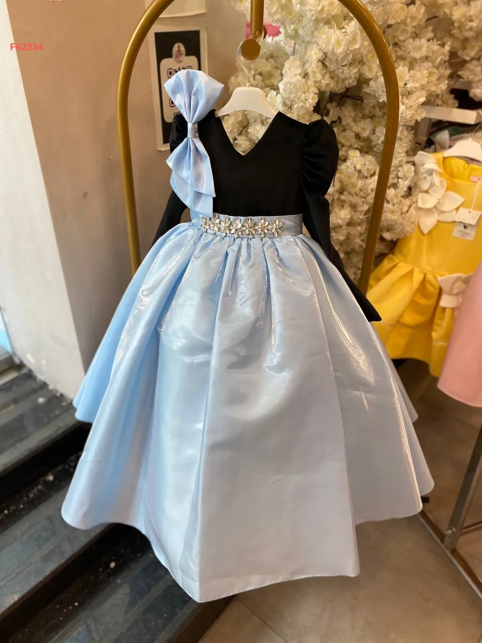 فستان بناتي ملكي لونين بفيونكة وأحجار