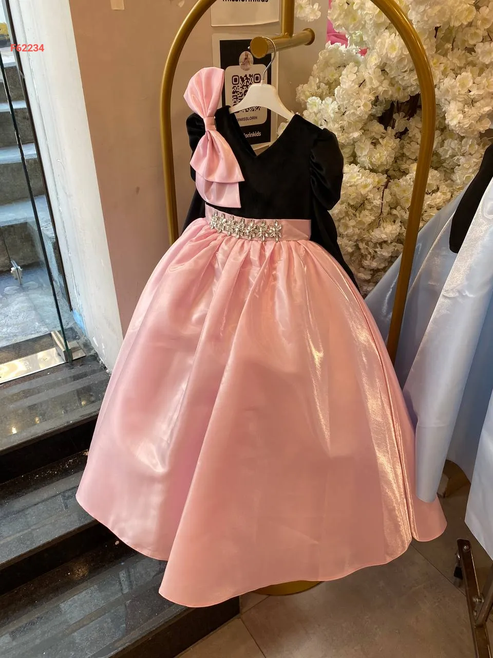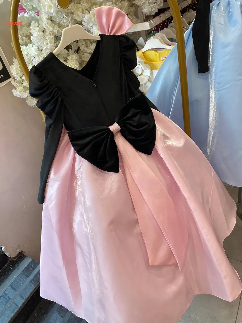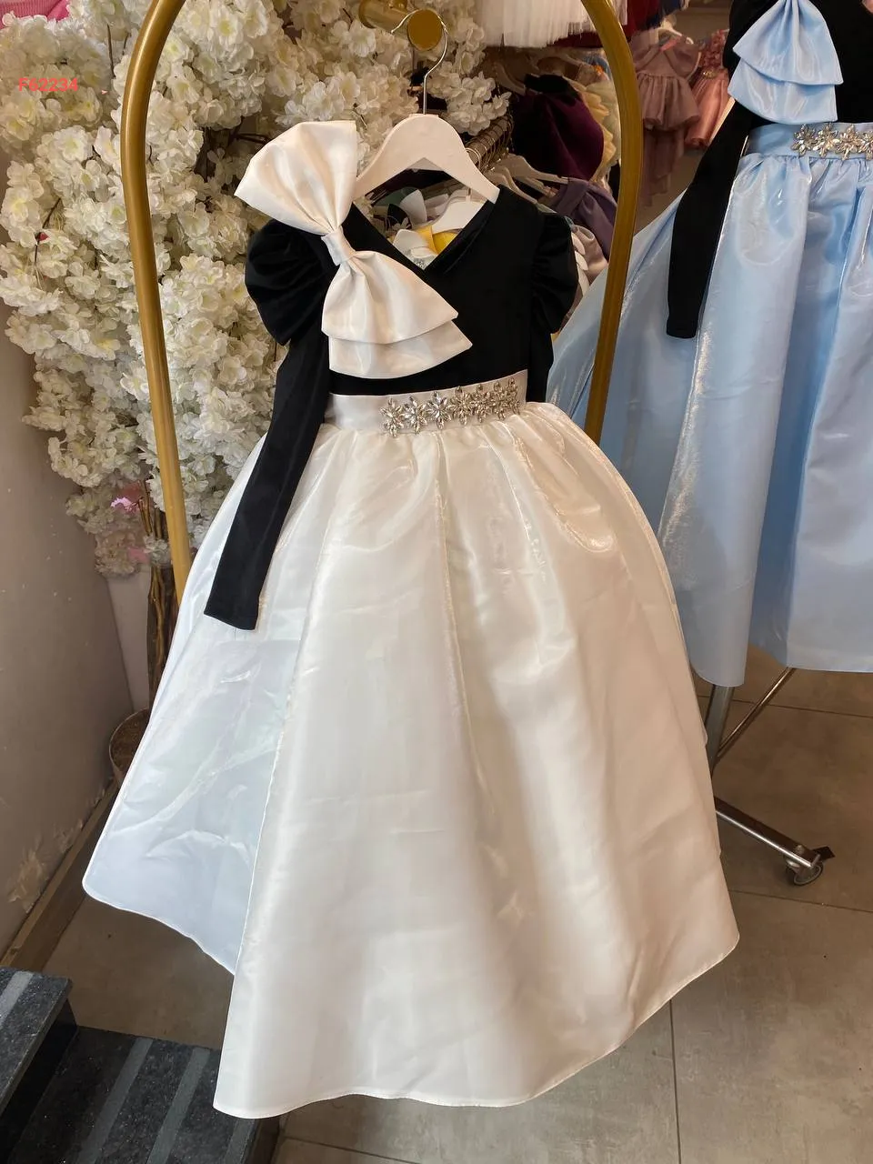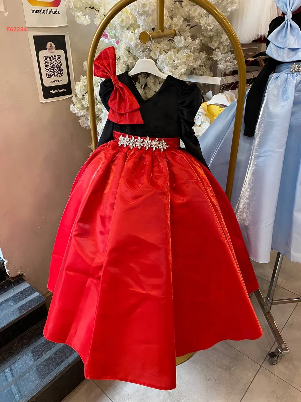 فستان بناتي ملكي لونين بفيونكة وأحجار