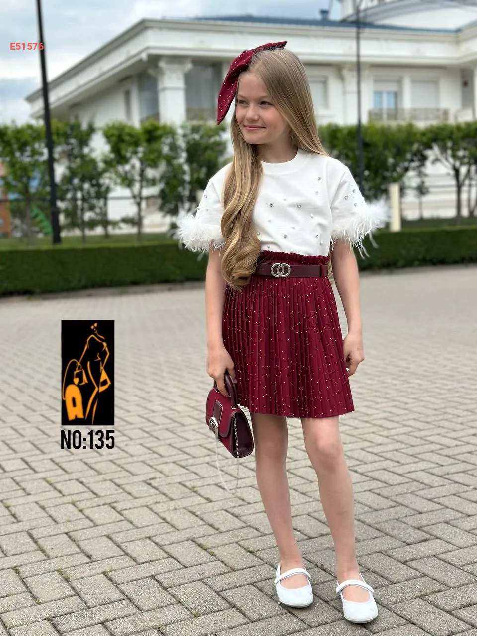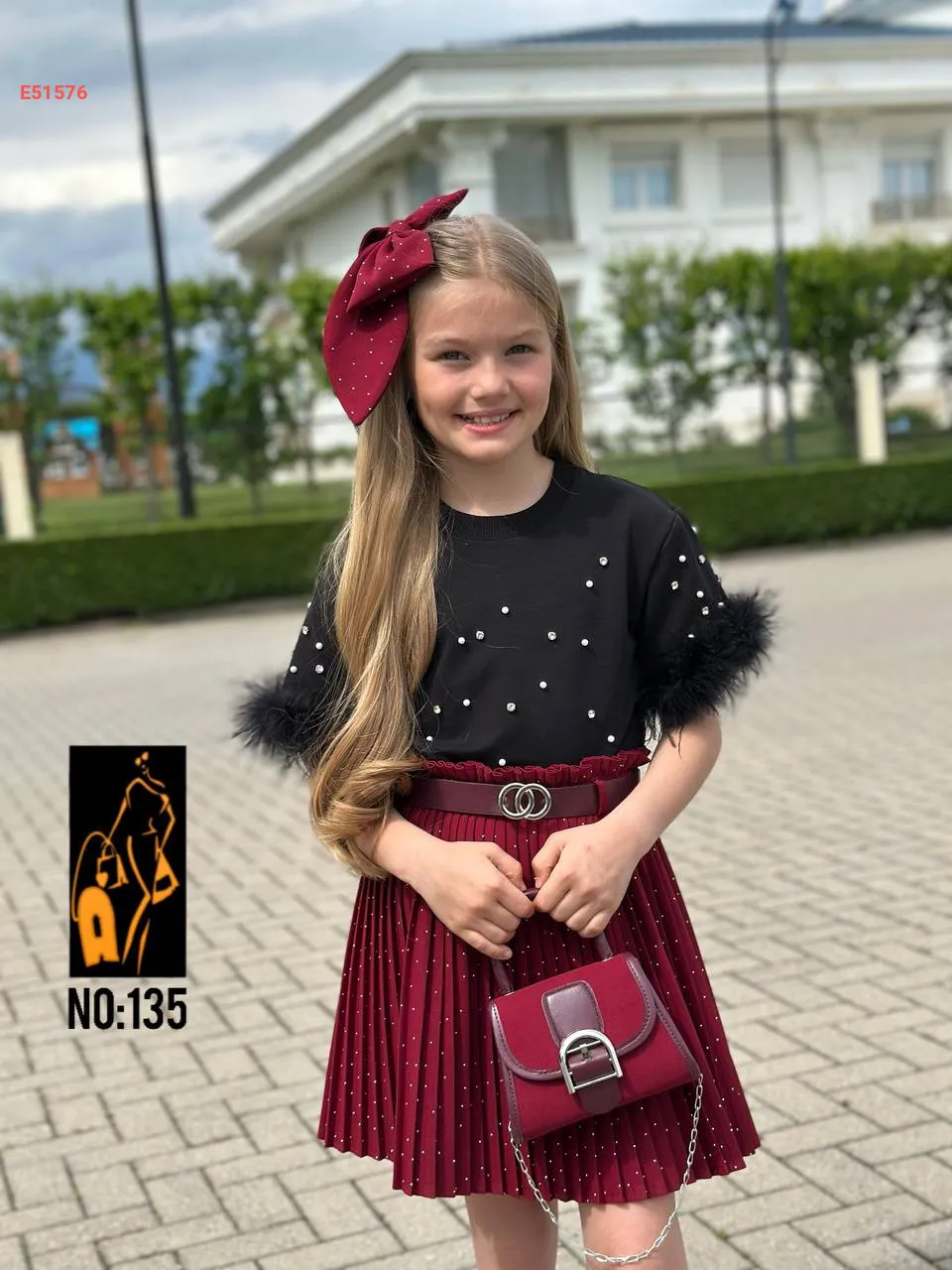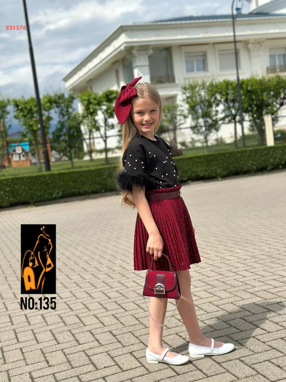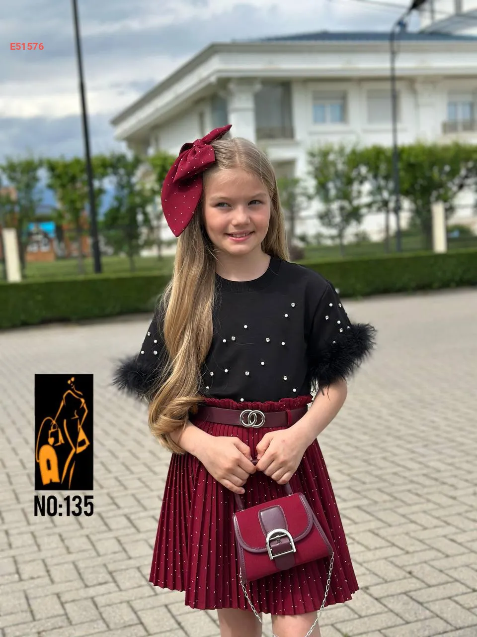 etek + Tişört+ Çanta + toka