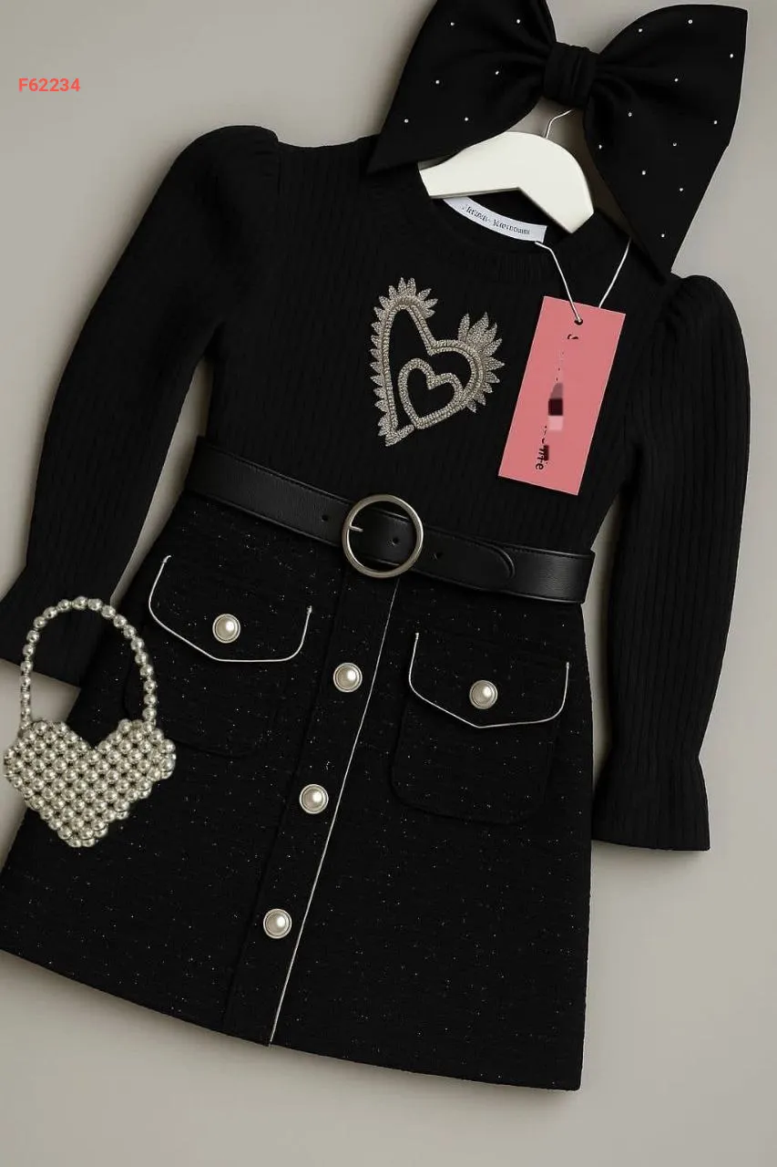 طقم تنورة بناتي شانيل وكنزة مع حقيبة