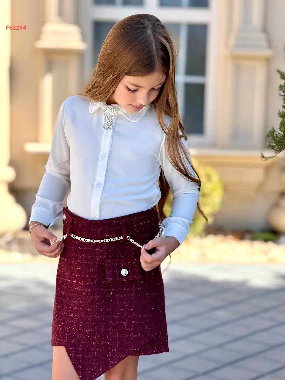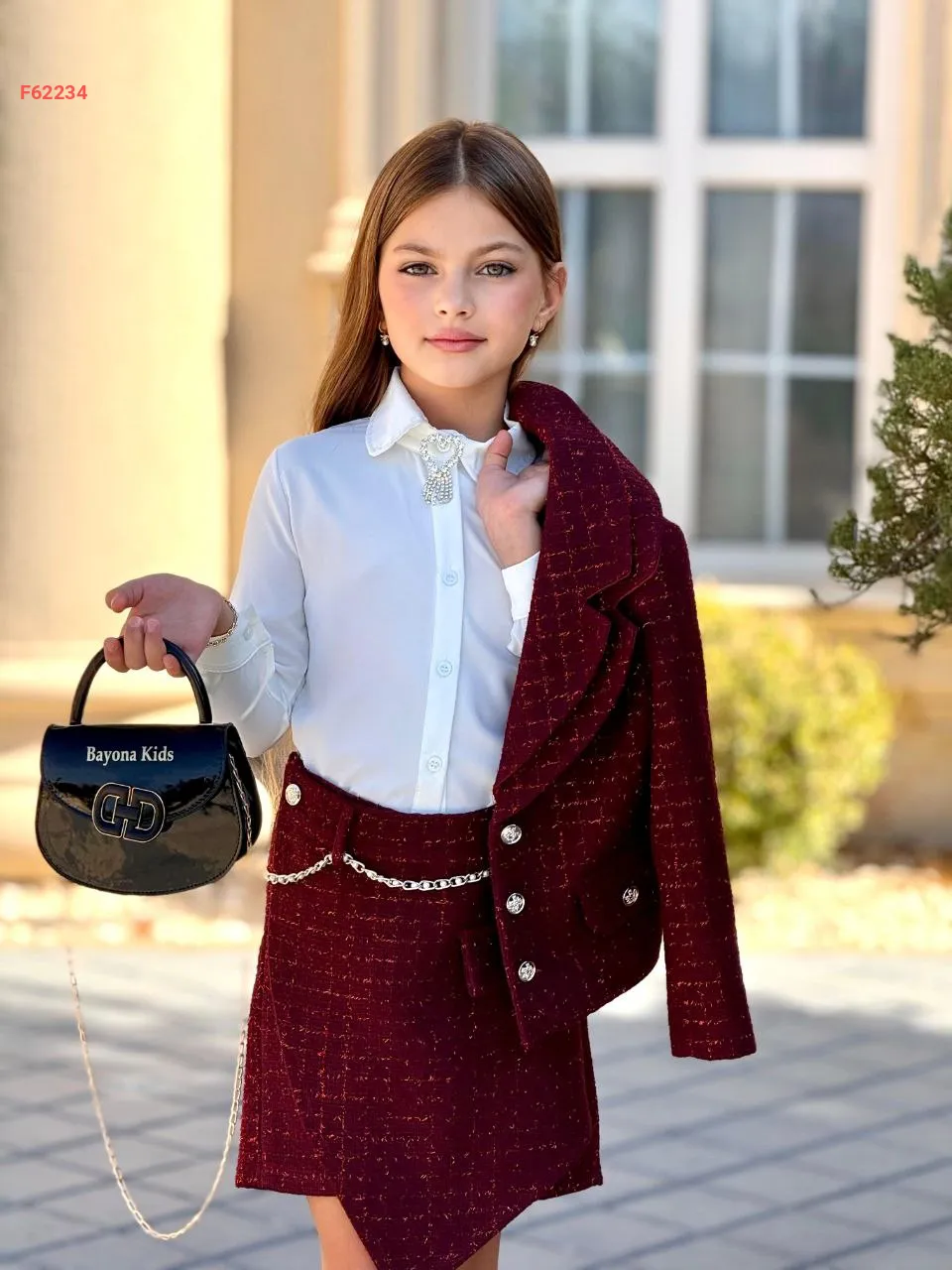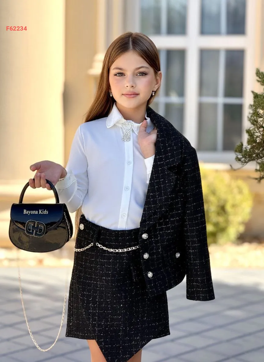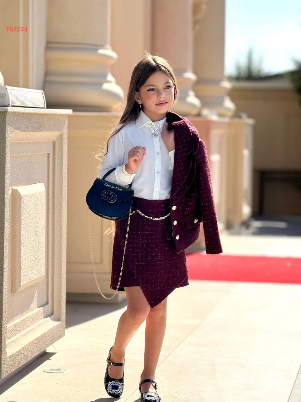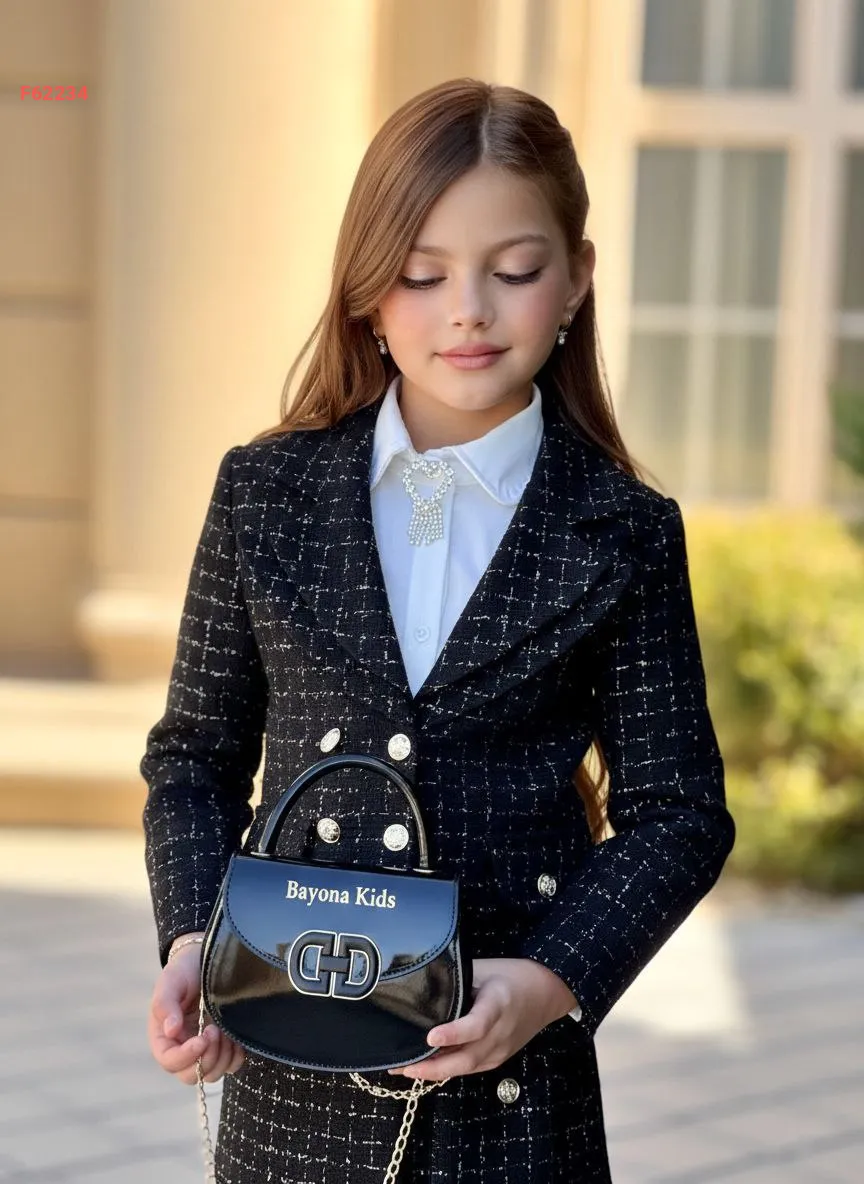 طقم تنورة بناتي شانيل 3 قطع مع حقيبة