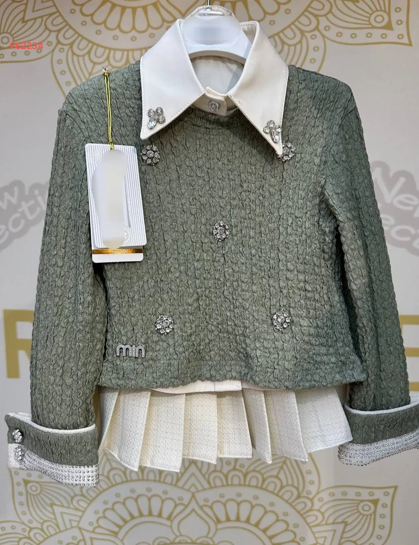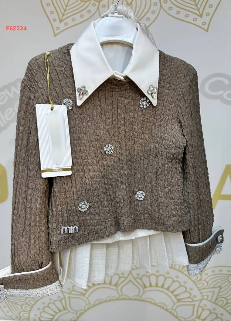طقم تنورة بناتي وبلوزة بأحجار