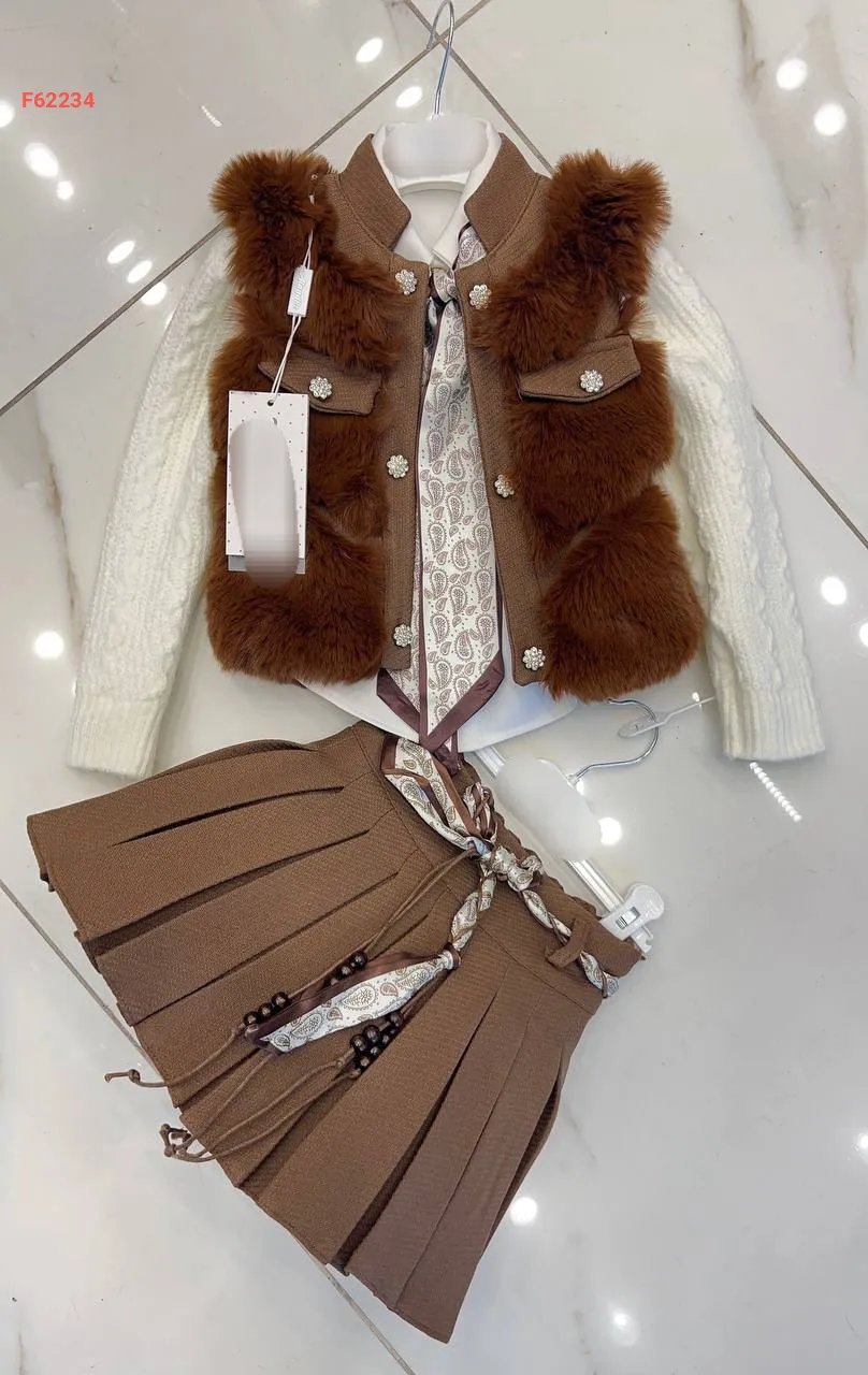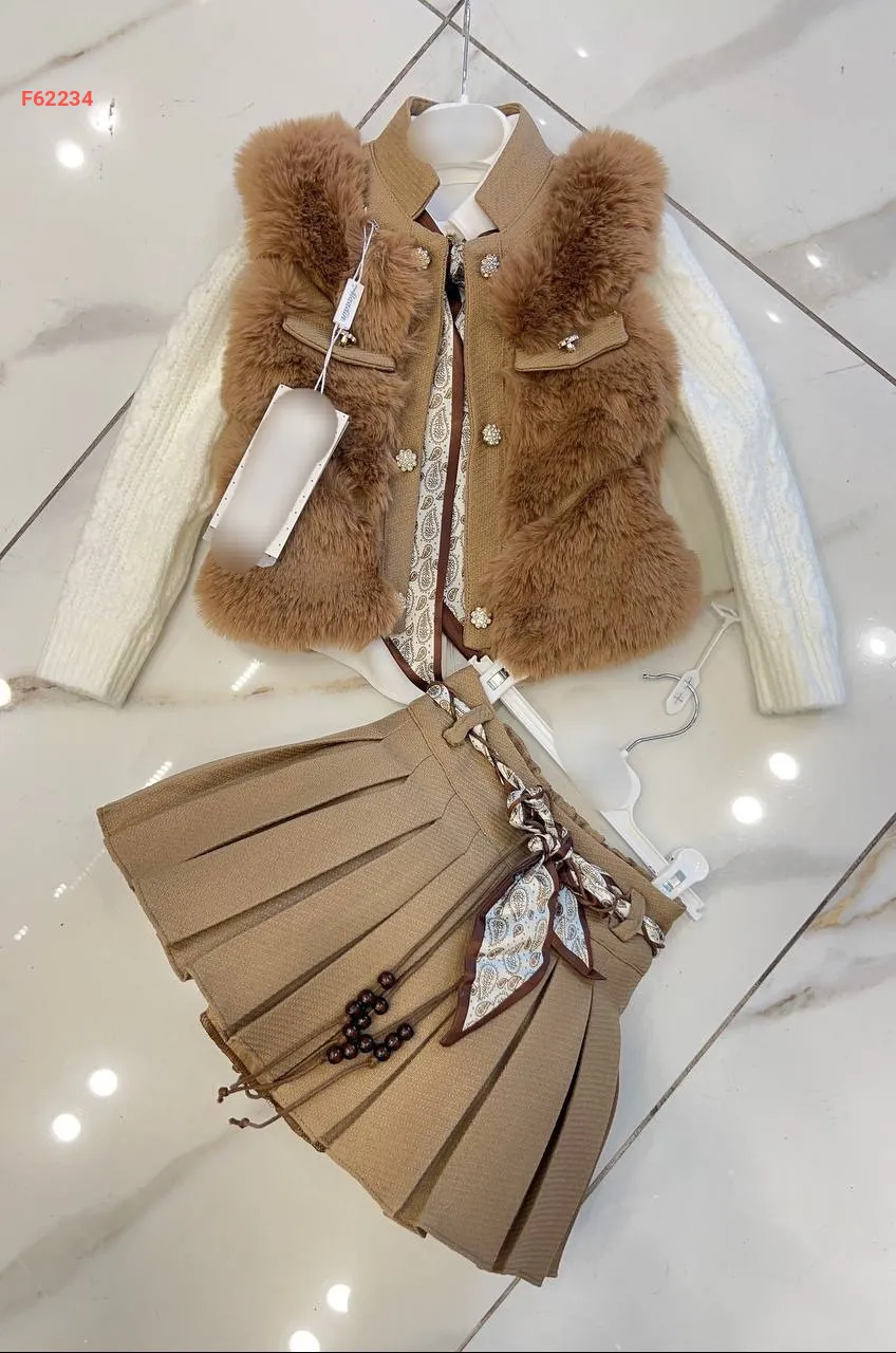 طقم تنورة بناتي شانيل وفرو