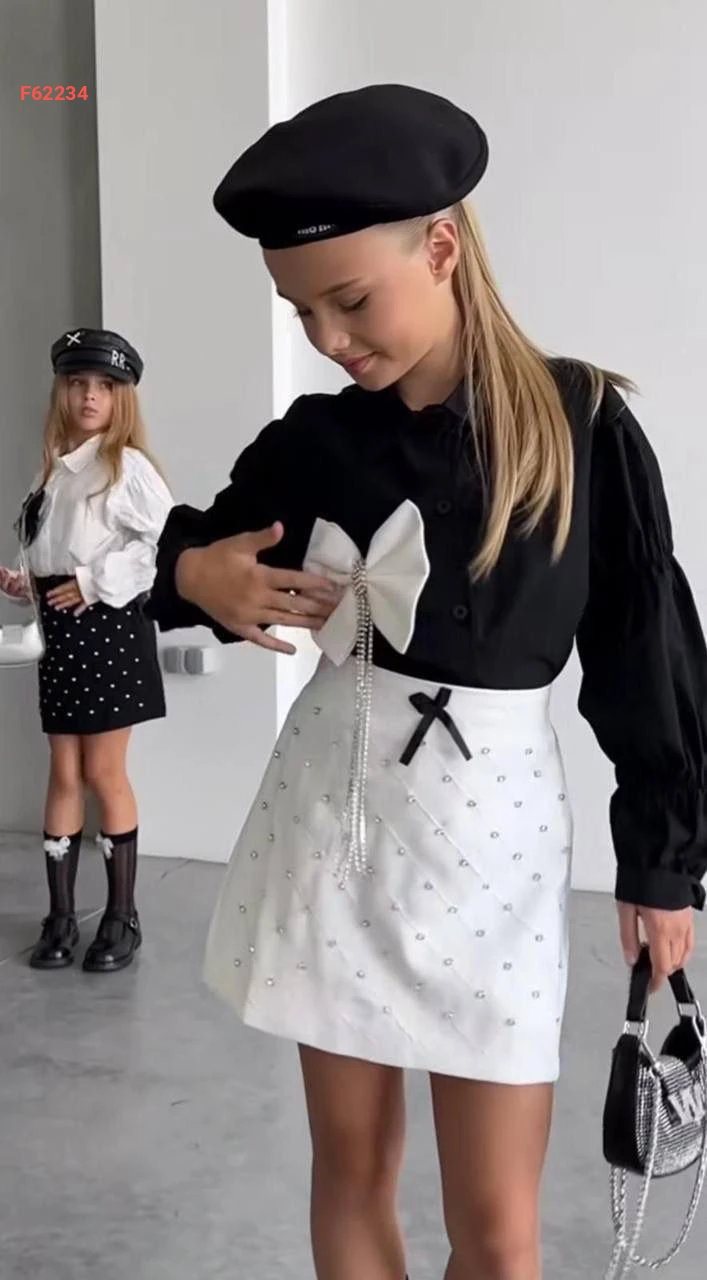 طقم تنورة بناتي حجرية مع قميص وحقيبة
