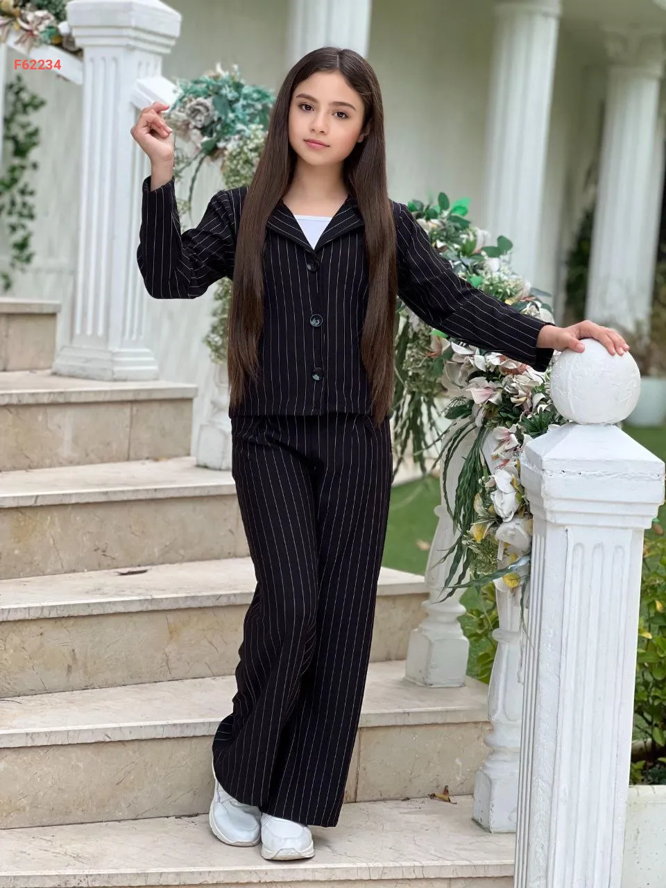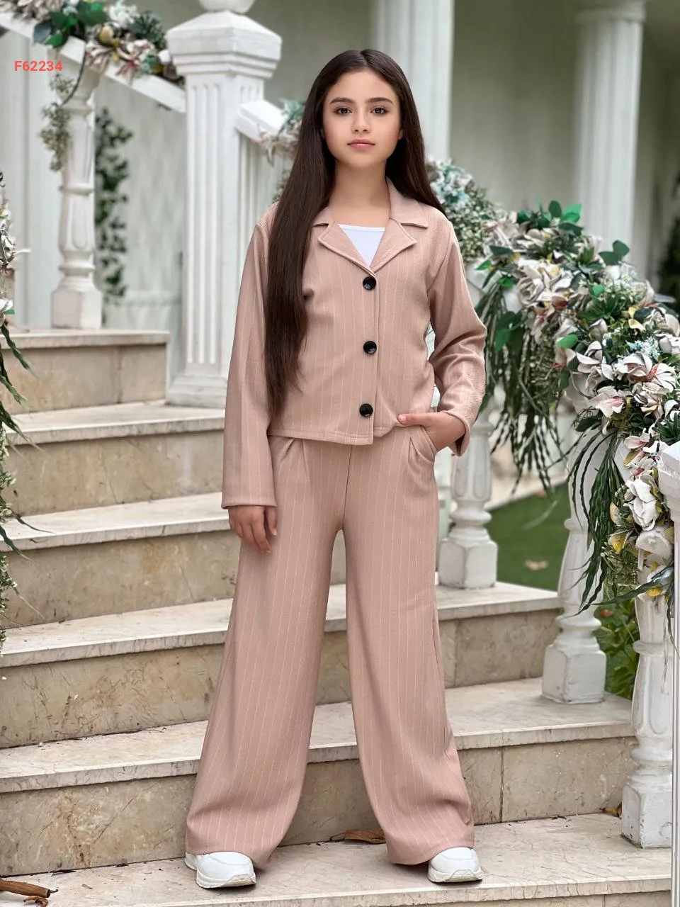 طقم بنطال بناتي مقلم مع جاكيت