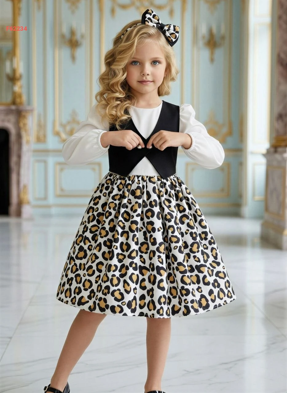فستان بناتي تايغر منفوش مع تفاصيل يلك