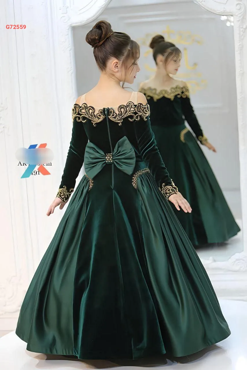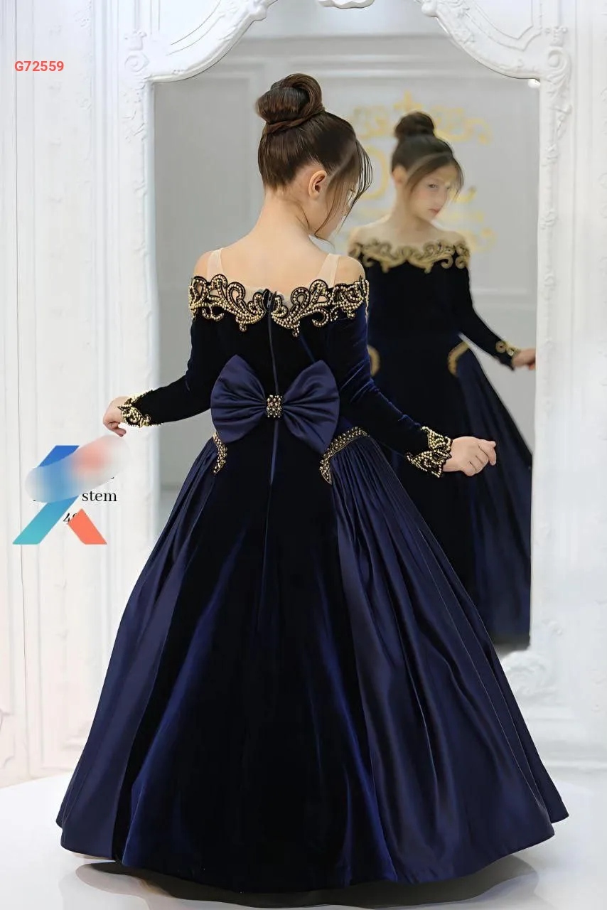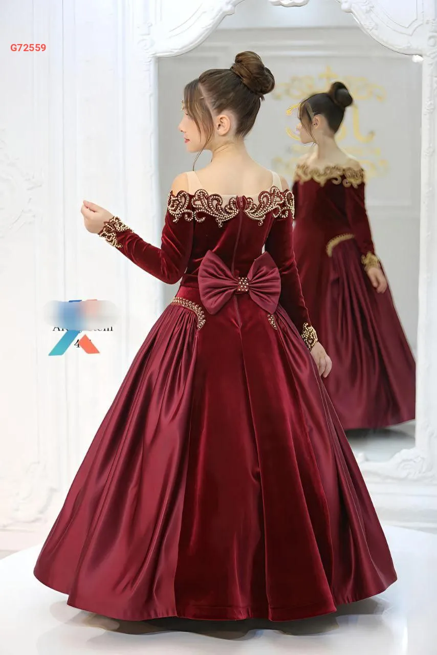 فستان بناتي مخمل مزين لولو بفيونكة خلفية