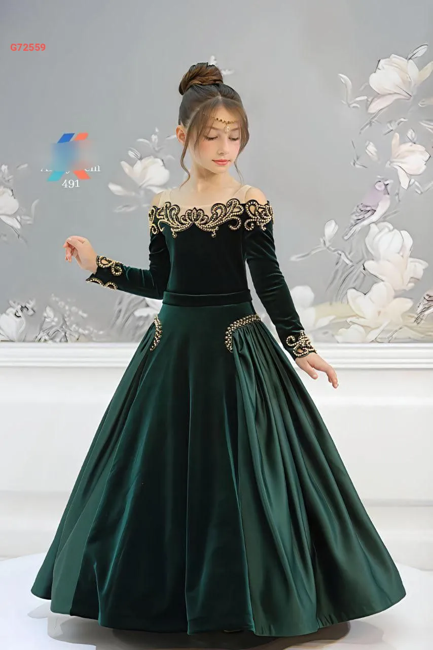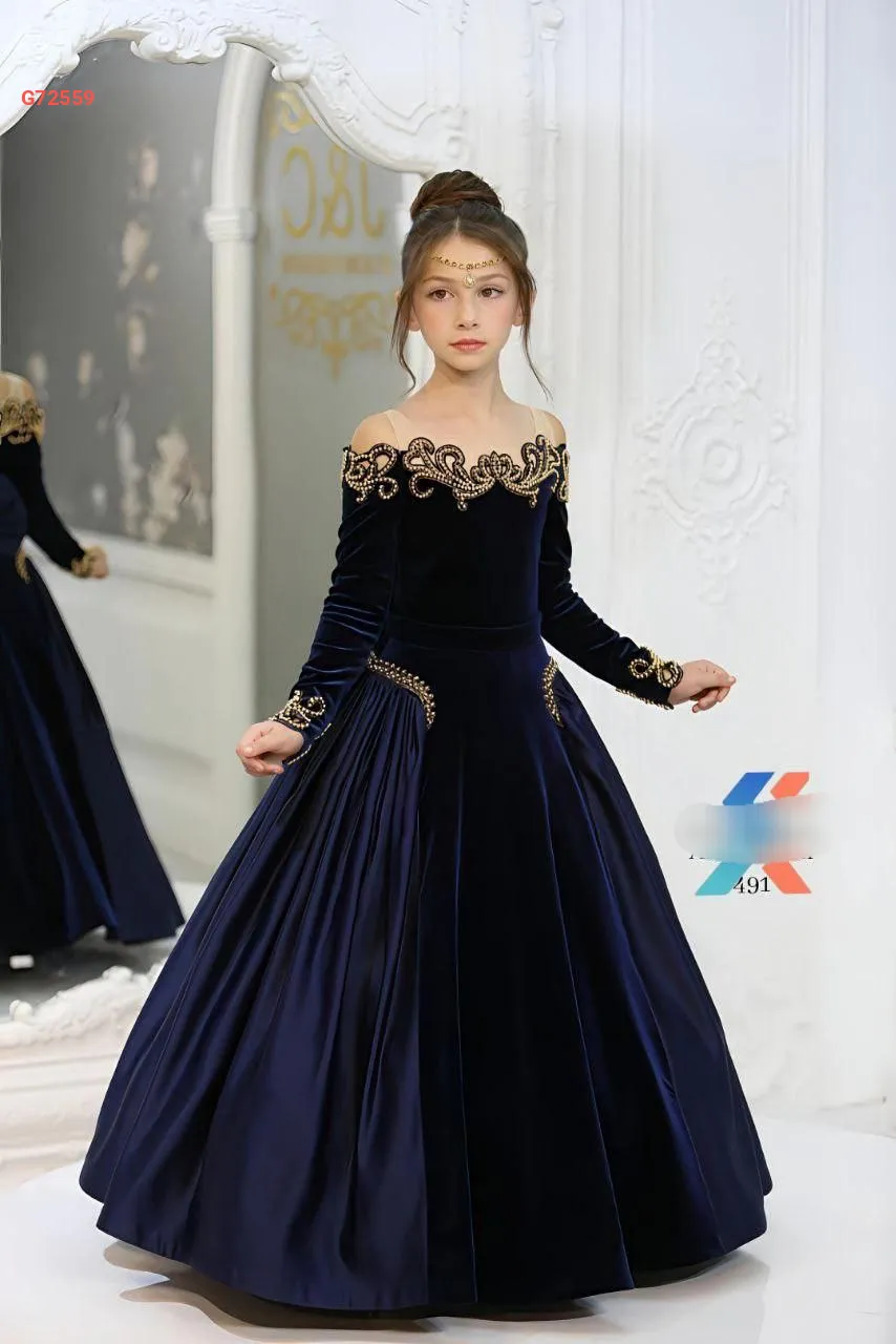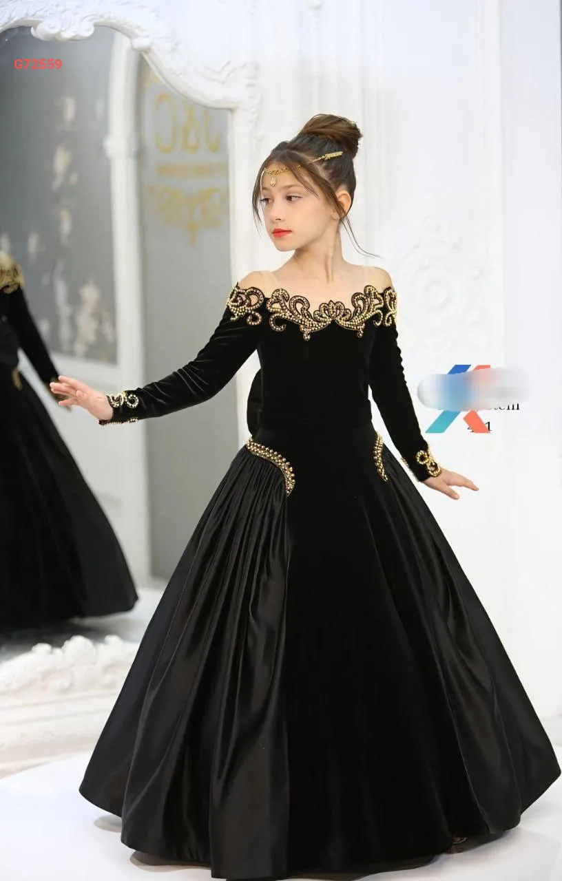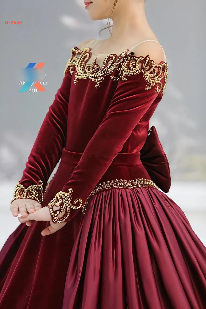 فستان بناتي مخمل مزين لولو بفيونكة خلفية