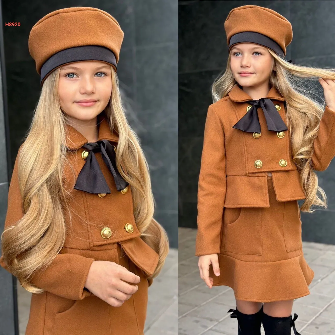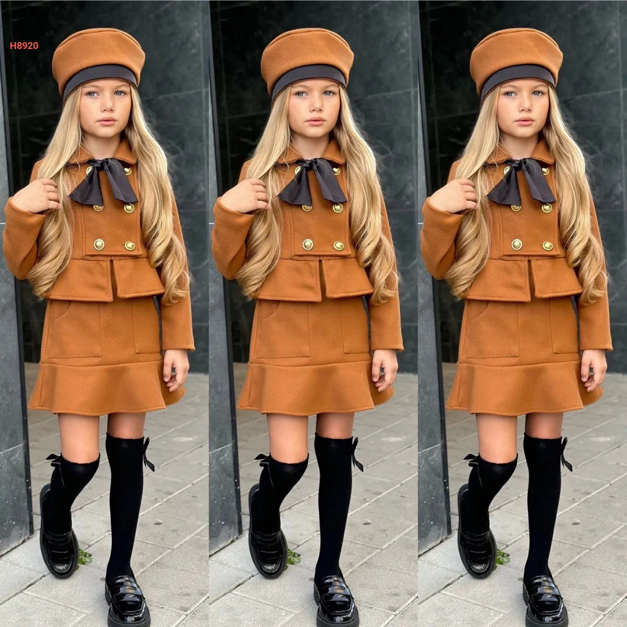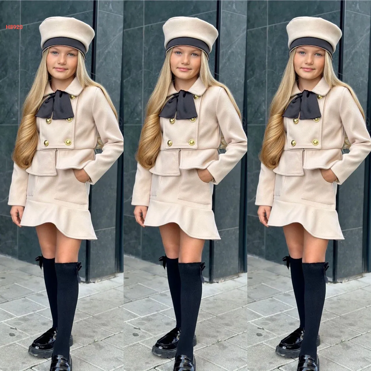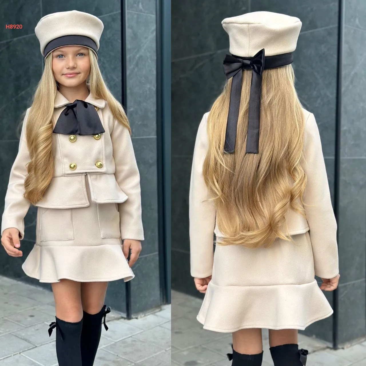 طقم تنورة بناتي شتوي وجاكيت بفولار