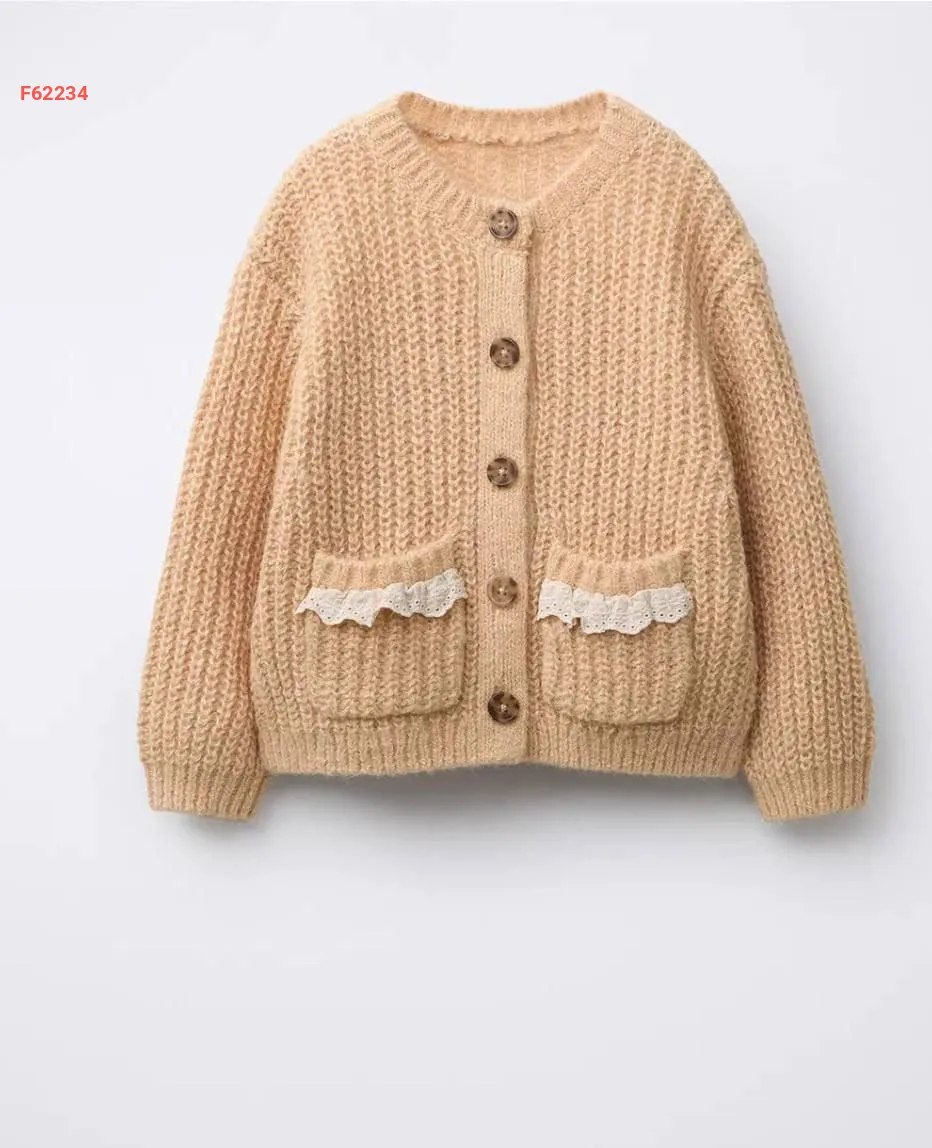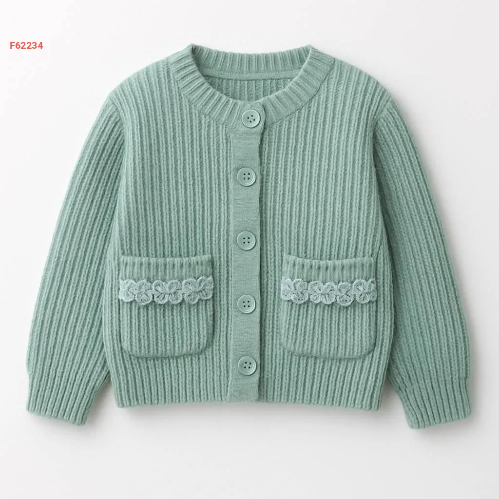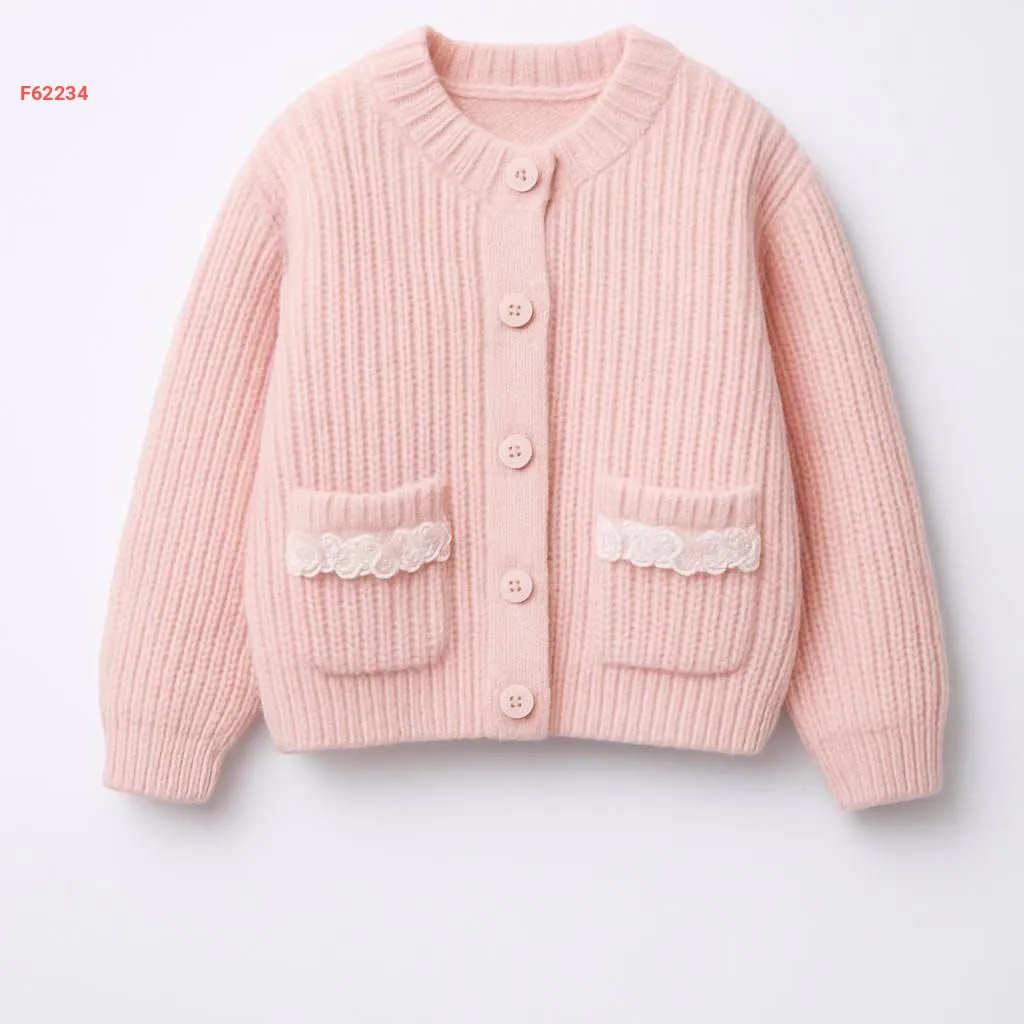 جاكيت بناتي صوف بجيوب مكلفة دانتيل