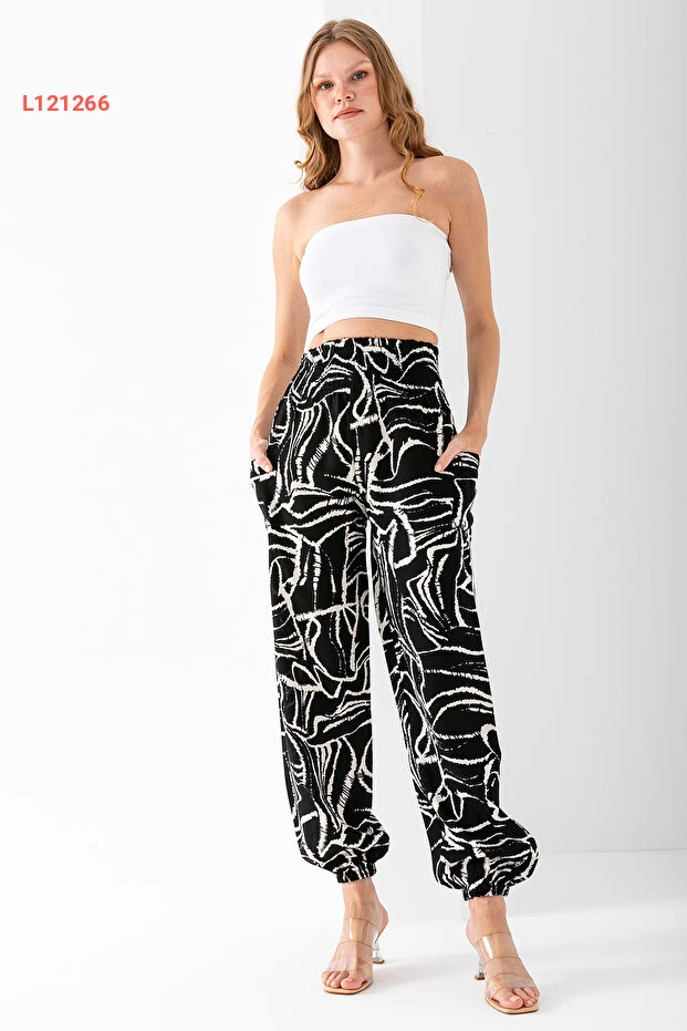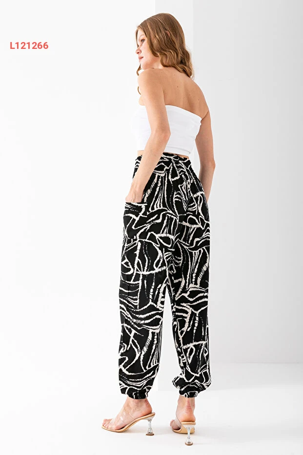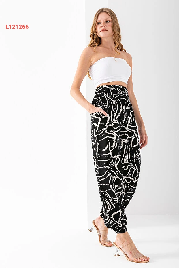 بنطال شالوار نسائي بتصميم مميز و جيوب مزدوجة - أسود