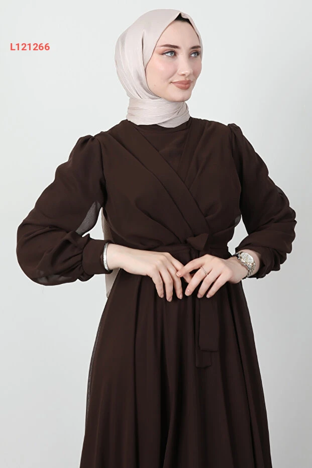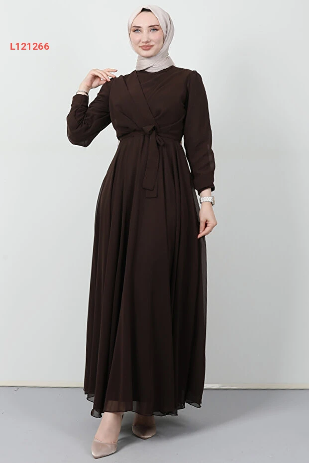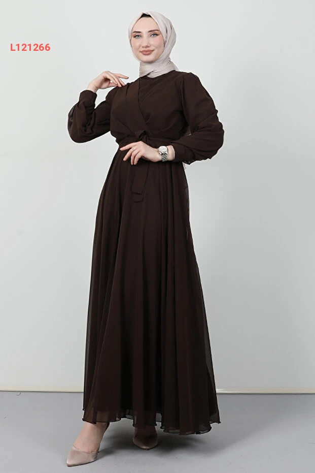 استمتعي بإطلالة أنيقة وجذاب مع فستان جيزا شيفون بتصميمه العصري بلون القهوة الداكنة. يتميز هذا الفستان بقصته المميزة المُعززة بتفاصيل عابرة تجعل كل حركة تنبض بالأنوثة والرقي. ارتديه في المناسبات الخاصة أو حتى في الأيام العادية لإطلالة ملفتة ومريحة.