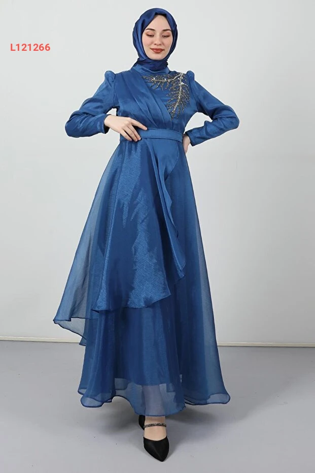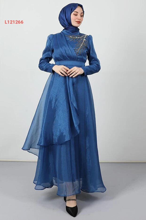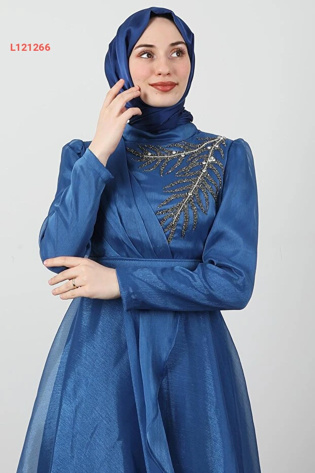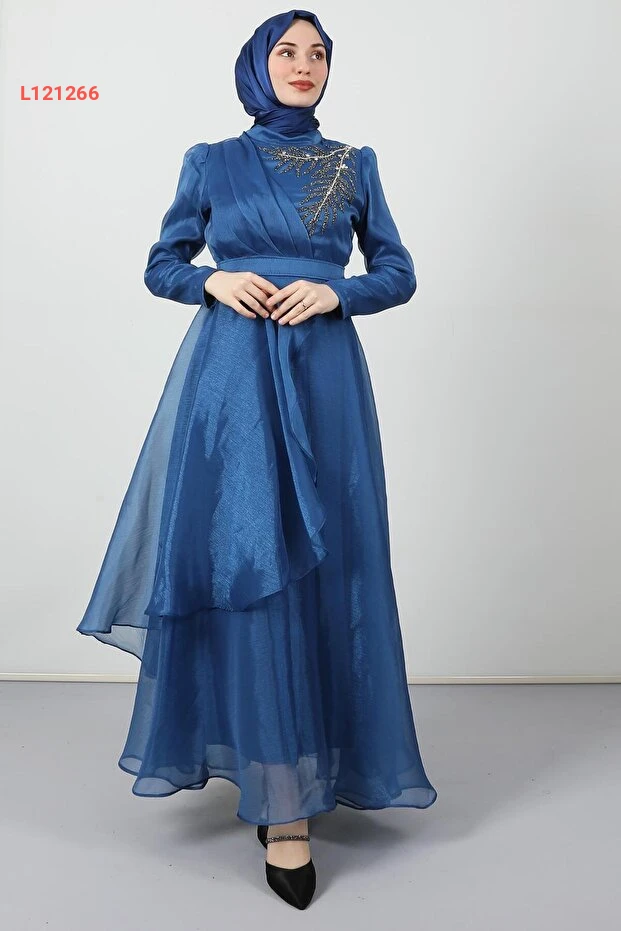 استمتعي بإطلالة ساحرة مع فستان Giza Giyim Taşlı Organze Abiye بلون الإنديجو الرائع. يجمع بين الأناقة والراحة، حيث يتميز بتفاصيله الماسية الفريدة ونسج الأورغنزا الفاخر، مما يجعله الخيار المثالي لأي مناسبة خاصة. استعدي لتكوني مركز الأضواء مع كل خطوة!