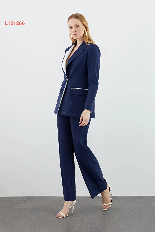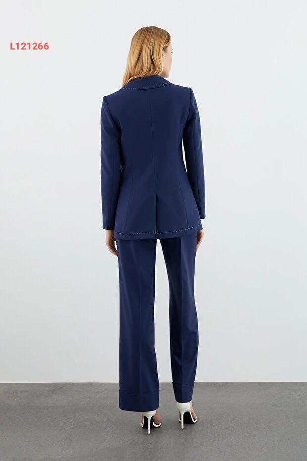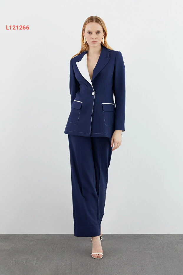 استمتع بالأناقة والفخامة مع طقم GIZIA الذي يتضمن سترة بتفاصيل رائعة وسروال بالازو واسع. باللون الأزرق الداكن الجذاب، يعكس هذا الطقم الأناقة العصرية، مما يجعله مثاليًا للمناسبات الرسمية أو لإطلالة مريحة في المكتب. اجعلي كل لحظة مميزة مع لمسة من الأناقة التي لا تُضاهى.