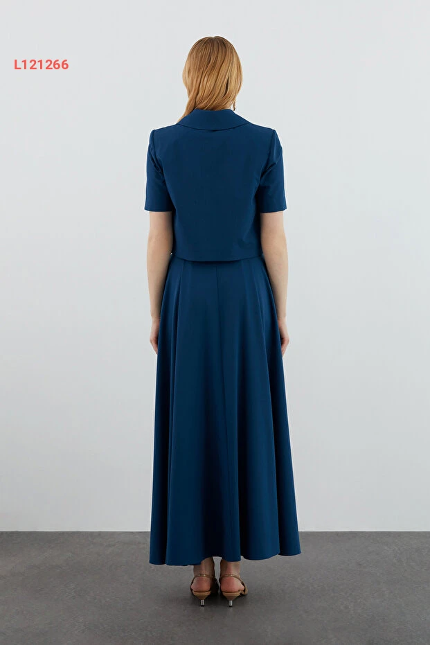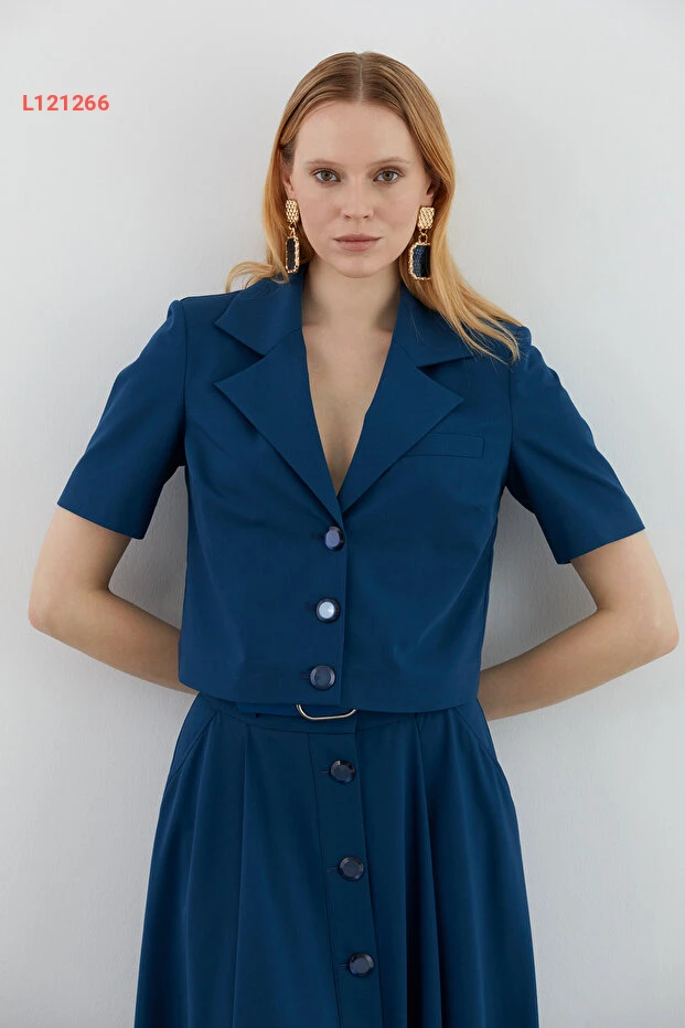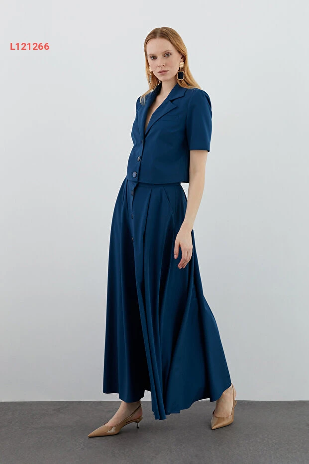 استعدي للتألق مع هذا الطقم الأنيق من GIZIA، الذي يجمع بين الجاذبية والراحة. يتكون من سترة قصيرة ذات أكمام وكُلوش أنثوي مزين بتفاصيل حزام أنيقة، بلون أزرق غامق يجعل كل إطلالة فريدة. تصميمه العصري مثالي للمناسبات الرسمية أو غير الرسمية، ليضيف لمسة من الأناقة إلى خزانة ملابسك.