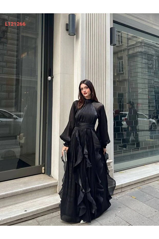 استمتعي بأناقة لا مثيل لها مع فستان GİZONLY Midi شيفون الأسود، الذي يضفي لمسة متميزة على إطلالتك. تصميمه الأنيق والمريح يجعله مثالياً لجميع المناسبات، بينما يضمن قَصَّه المميز تعزيز جمال أنوثتك. اجعليه خيارك المثالي للتألق في كل مناسبة!
