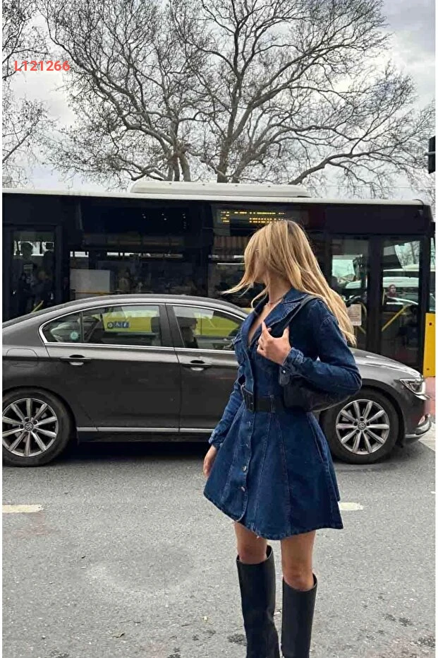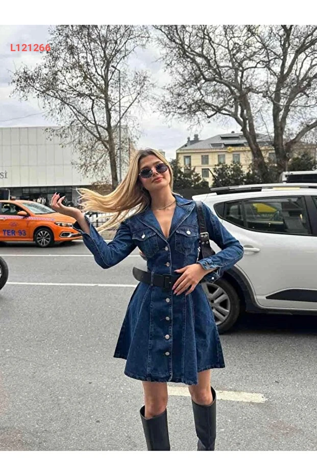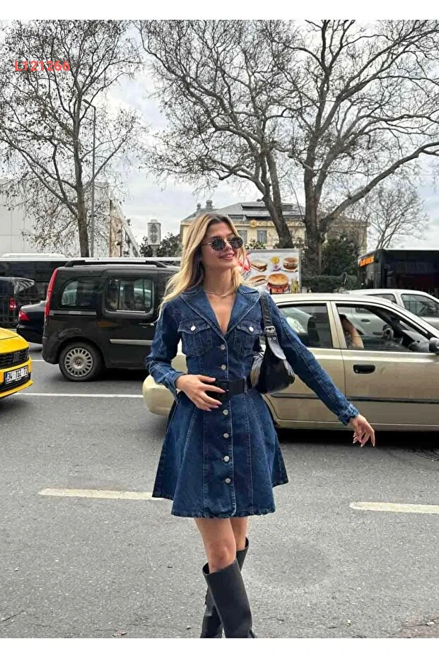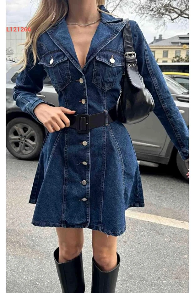 فستان جينز نسائي باللون الأزرق الداكن من GM Butikk