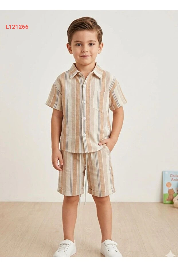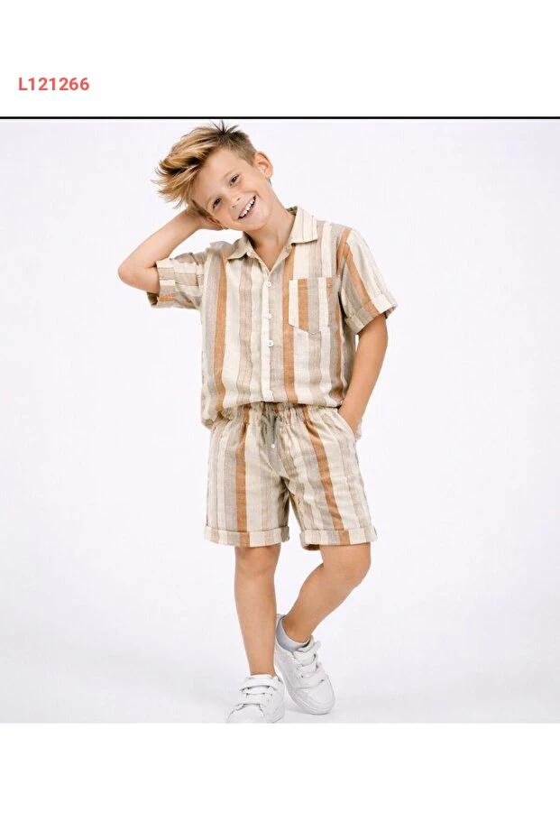 مجموعة صيفية أولاد بشورت وقميص مخطط - أسلوب بوهيمي