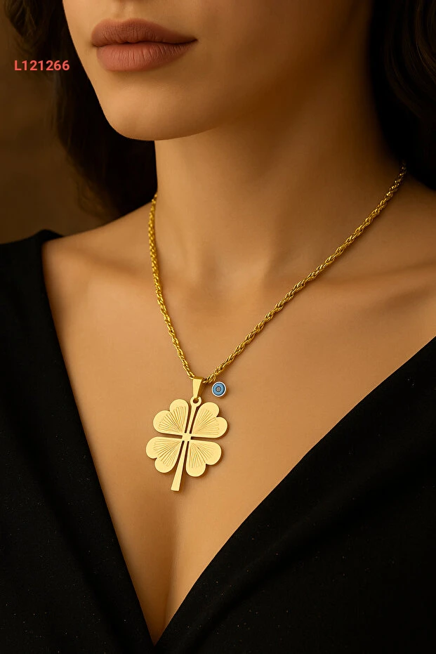 تألقي بإطلالة ساحرة مع قلادة الأربعة أوراق من غلانسيرايد، المصنوعة من الفولاذ المقاوم للصدأ ومطلية بالذهب. تمزج هذه القلادة بين الجمال والنعومة، بينما ترمز إلى الحظ الجيد، مما يجعلها الهدية المثالية لنفسك أو لأحبائك. اجعلي كل لحظة مميزة مع لمسة من الأناقة الخالدة!