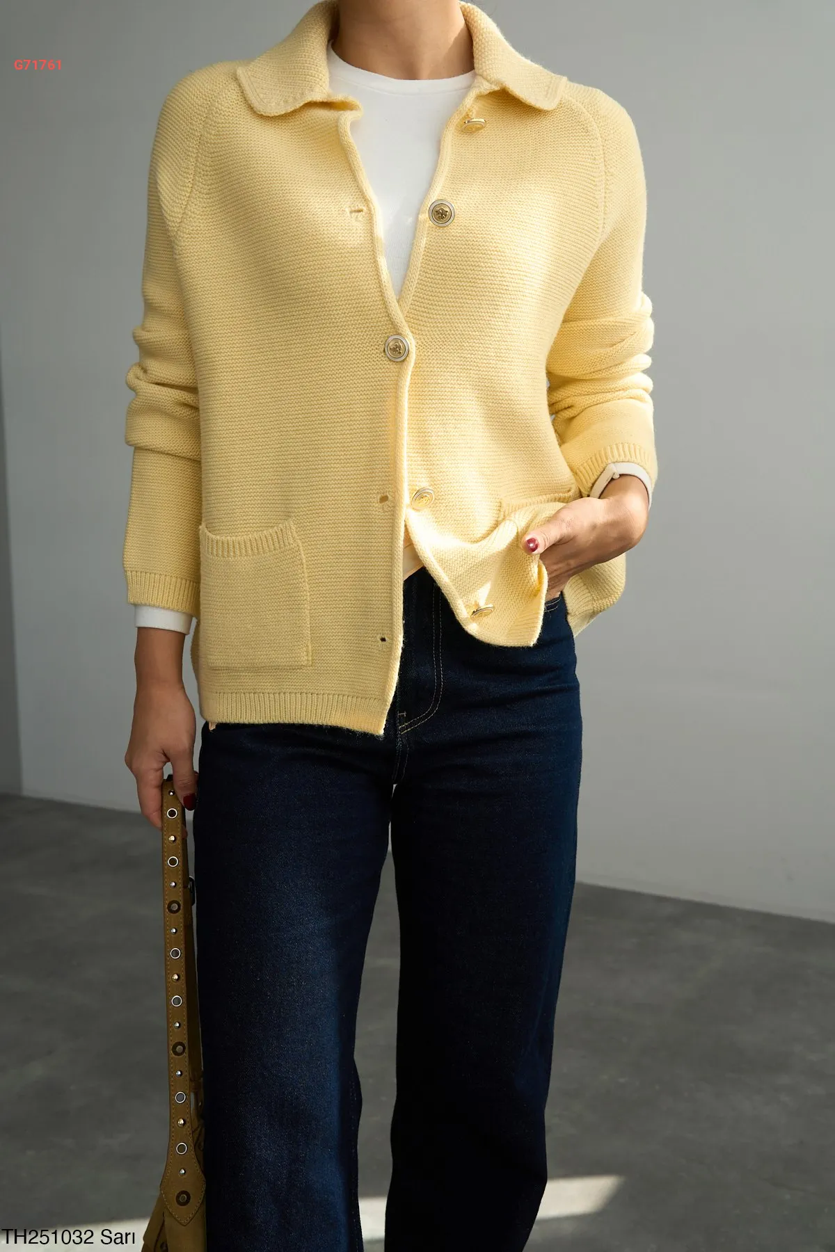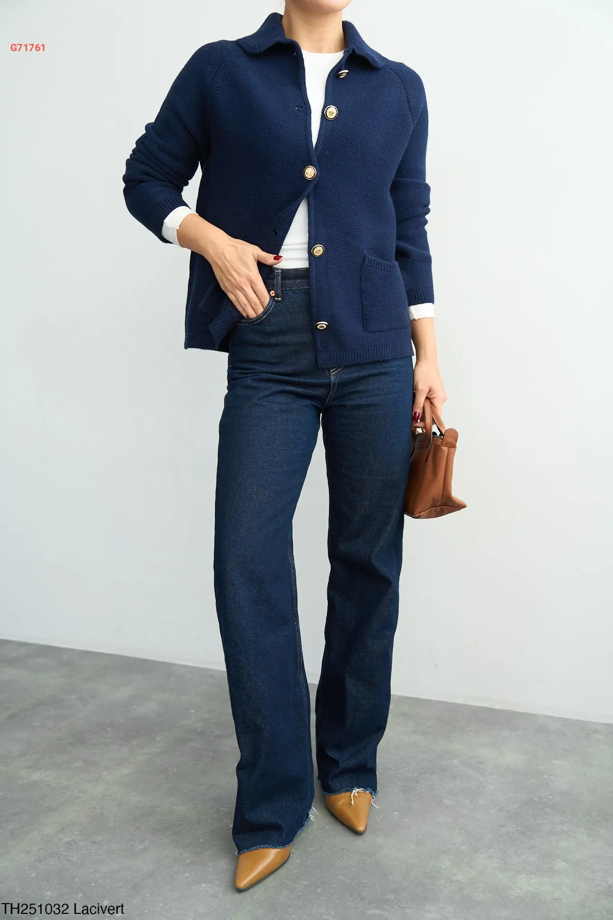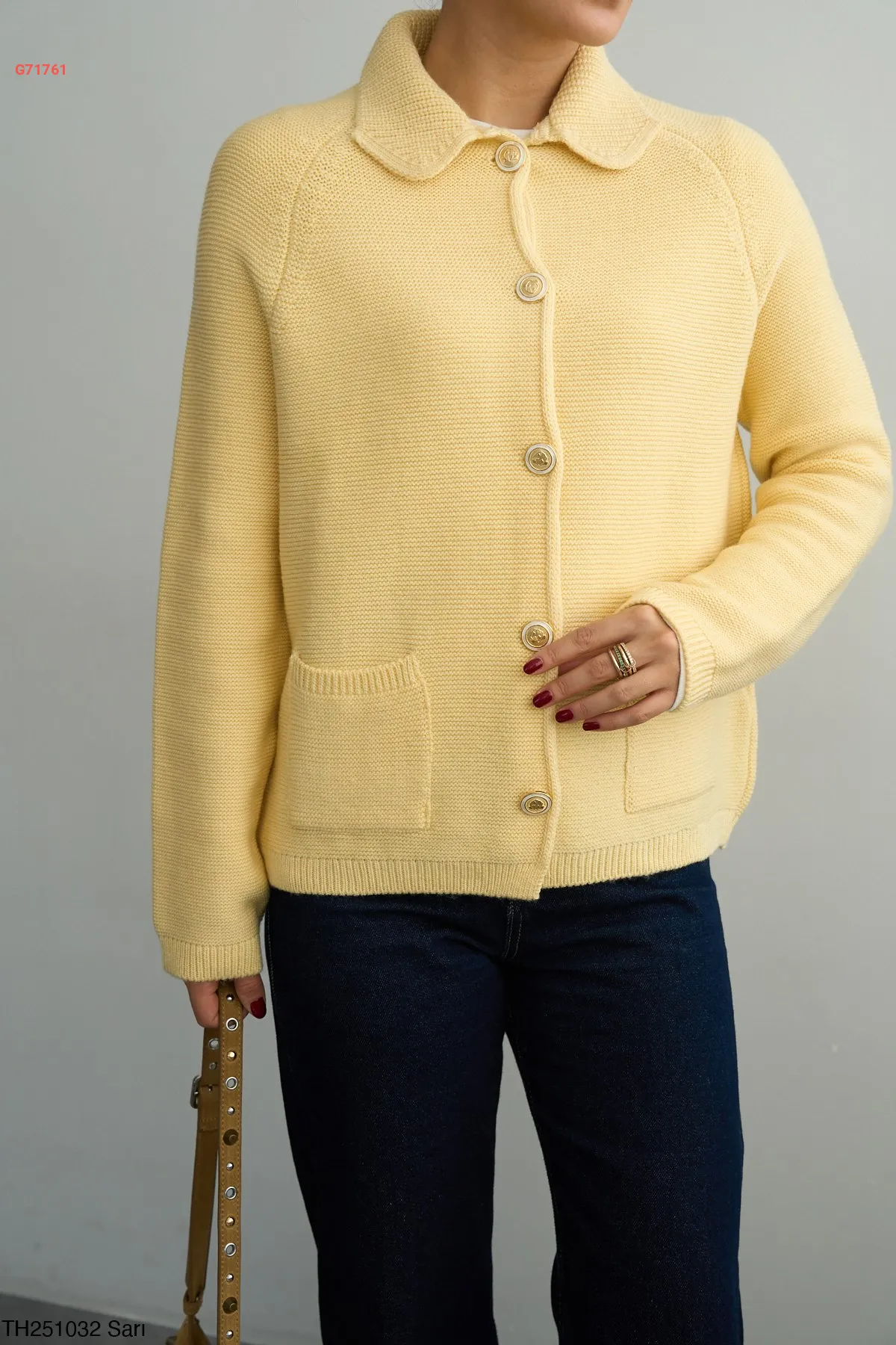 جاكيت تريكو بأزرار دهبي