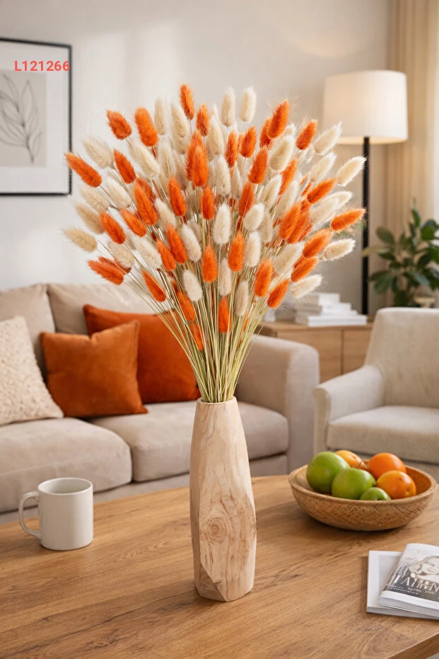 استمتع بجمال الطبيعة في منزلك مع باقة "Goya Home" من زهور القطن المجفف البرتقالي. تتكون من 30 غصناً من "Lagurus" الرائع، مما يضفي لمسة أنيقة ومبهجة على أي مكان. مثالية لتزيين حفلات الزفاف أو كلمسة فنية في الديكور الداخلي، تعكس هذه الباقة الألوان الدافئة وتضفي جوًا من الحيوية والسعادة.