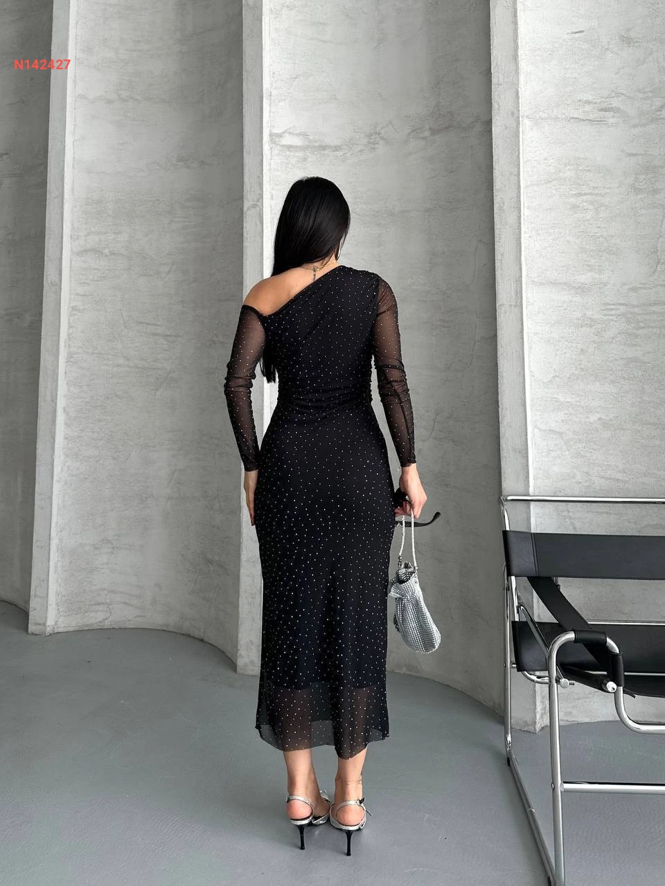 فستان تول حجري مرصع