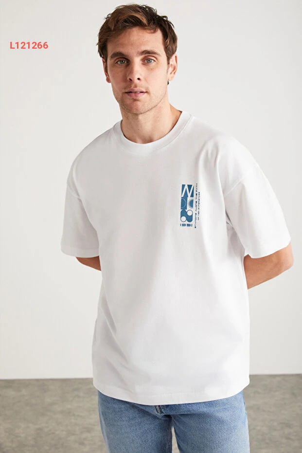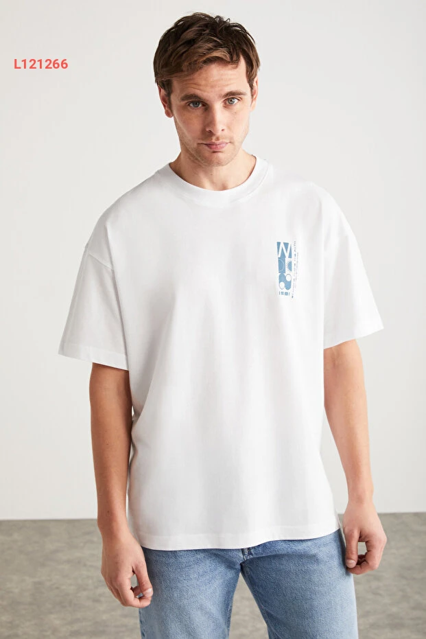 تي شيرت رجالي بيزر أبيض بطيطان عضوي 100% من جريملانج أنطونيو