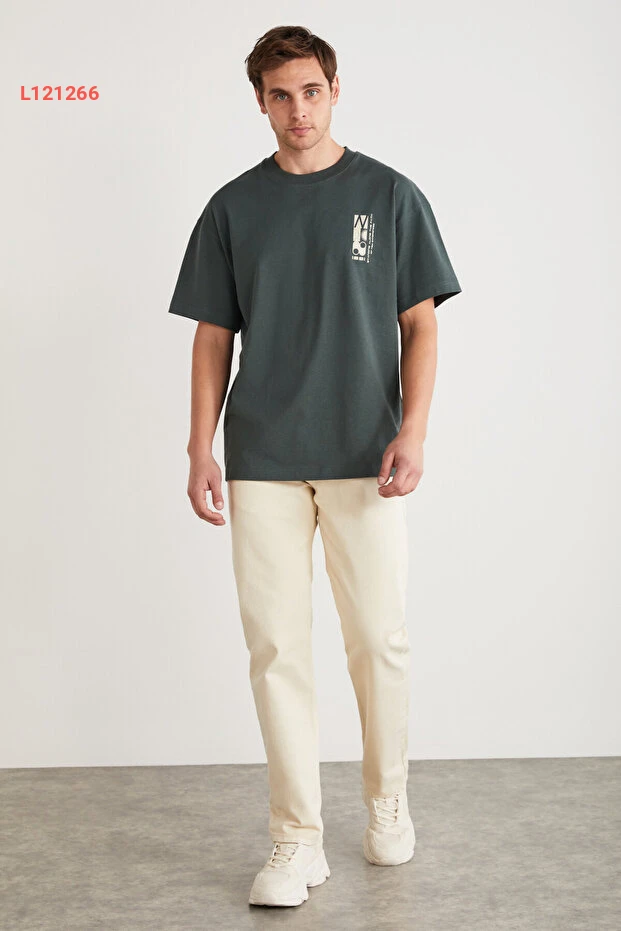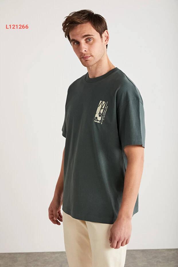تيشيرت أنطونيو الرجالي بأكمام واسعة وطبعات مميزة من قطن عضوي 100% باللون الأخضر