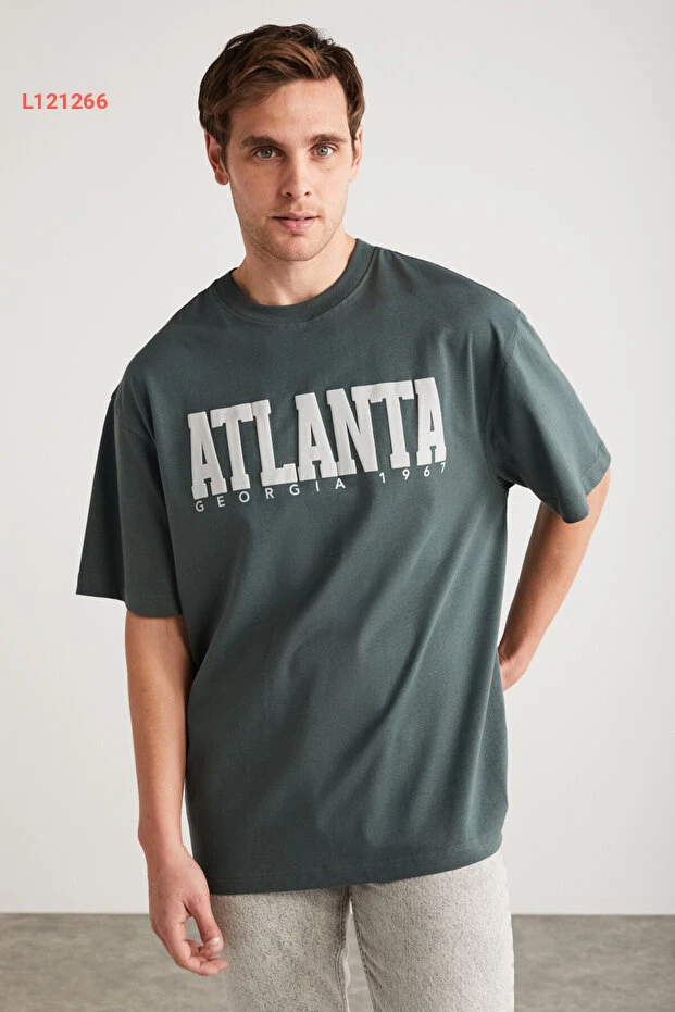 تي شيرت مونتاج أخضر قصير الأكمام 100% قطن للرجال من جريم لانج أتلانتا