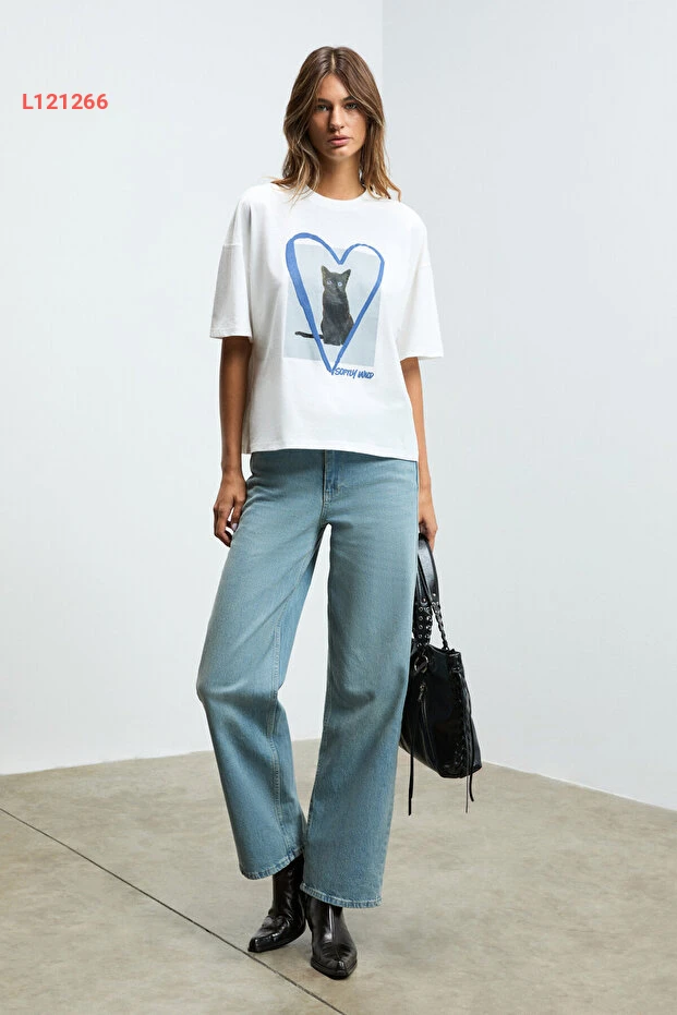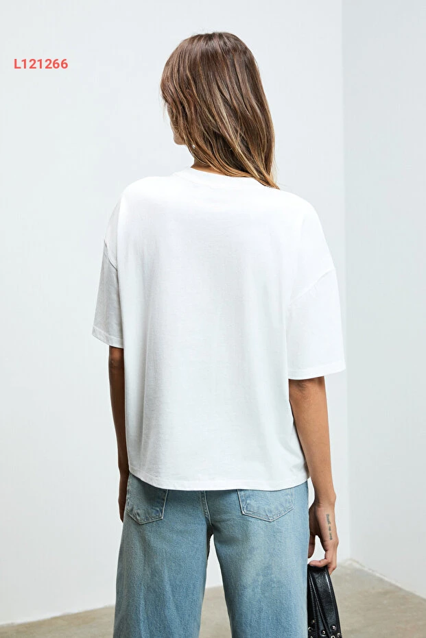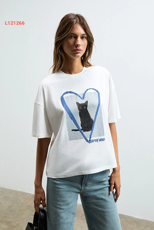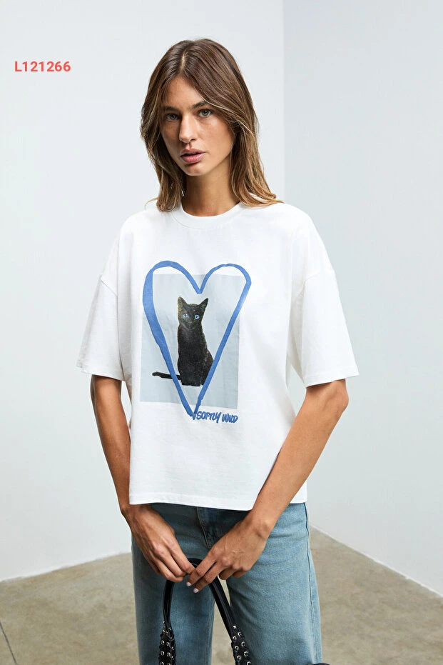 تي شيرت نسائي بيضاء بتفاصيل مطبوعة من قماش ناعم ومرن من غريملانج آيوكرا
